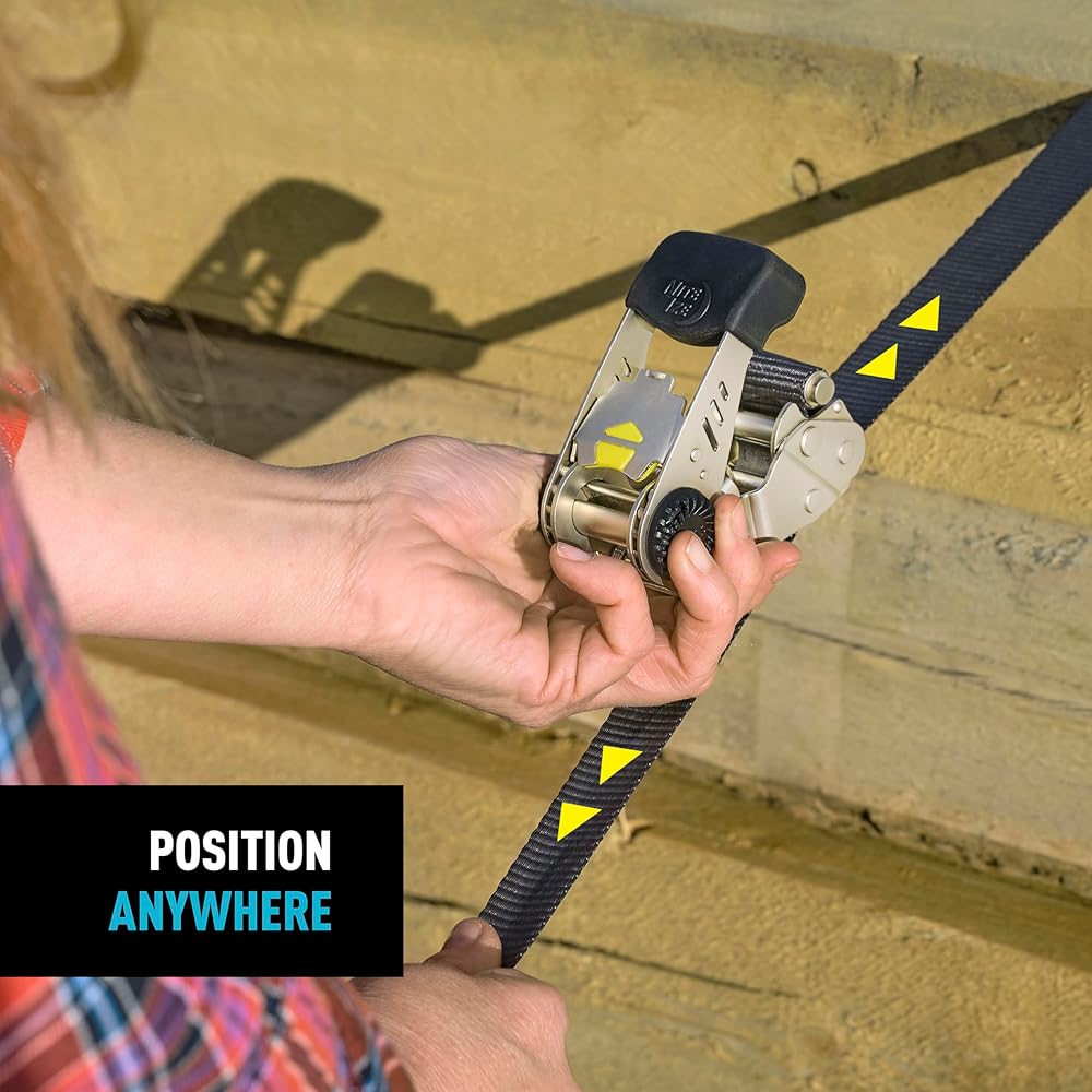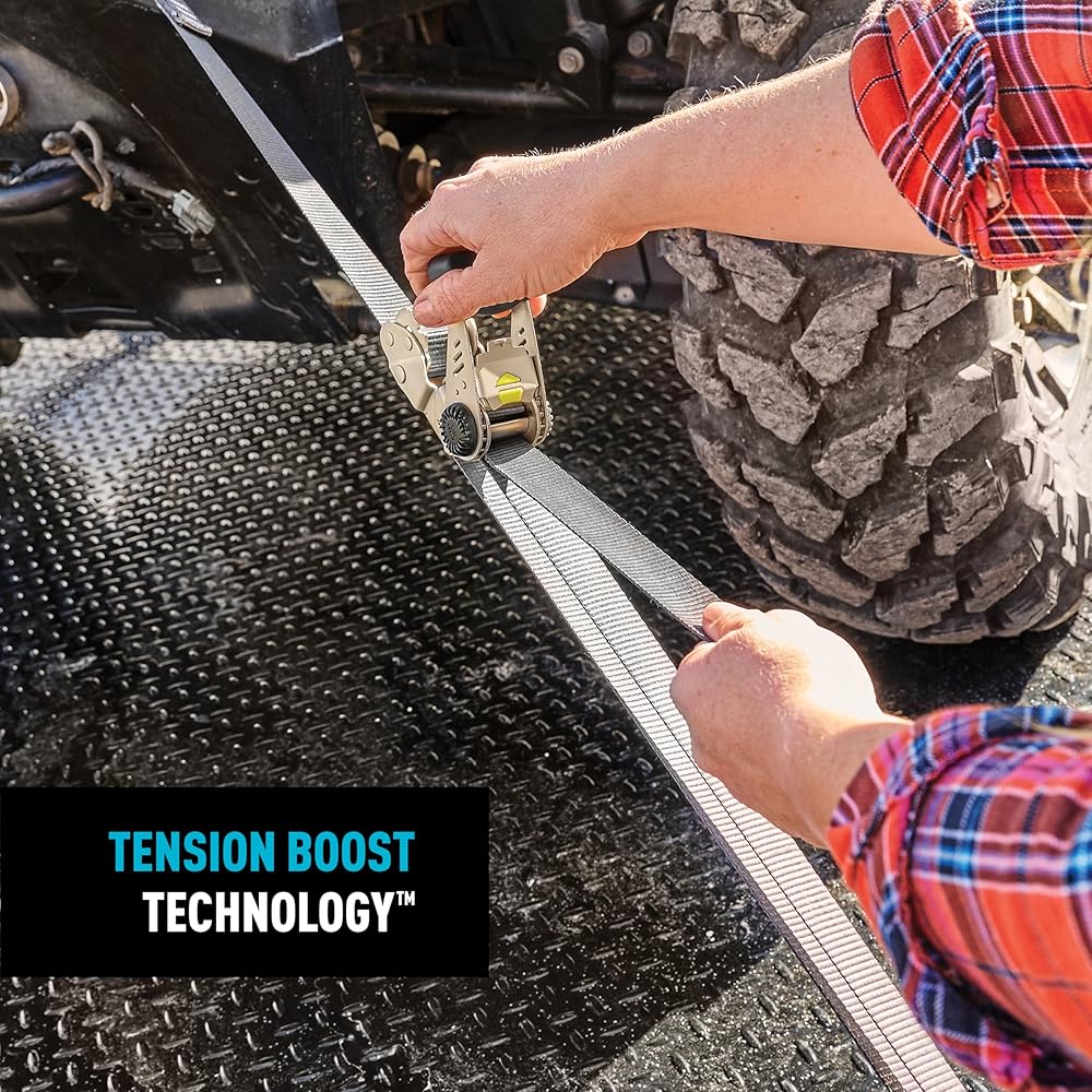 • High-Strength Ratchet: Tension Boost Technology reduces ratcheting effort by half while nearly doubling tension; this secure load system ensures smooth operation and long-lasting performance