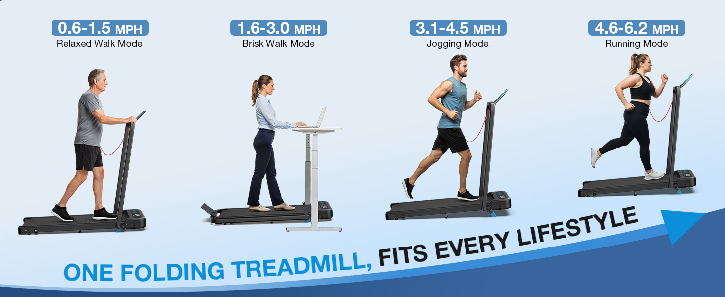 【Foldable Walking Pad Treadmill for Home & Office】 WELLFIT compact folding treadmill unfolds to 43.3" x 21.3" x 5" and folds to just 5" for effortless storage. Ideal for apartments, dorms, or under-desk setups - get your daily steps without sacrificing space. A treadmill that adapts to your lifestyle, not the other way around