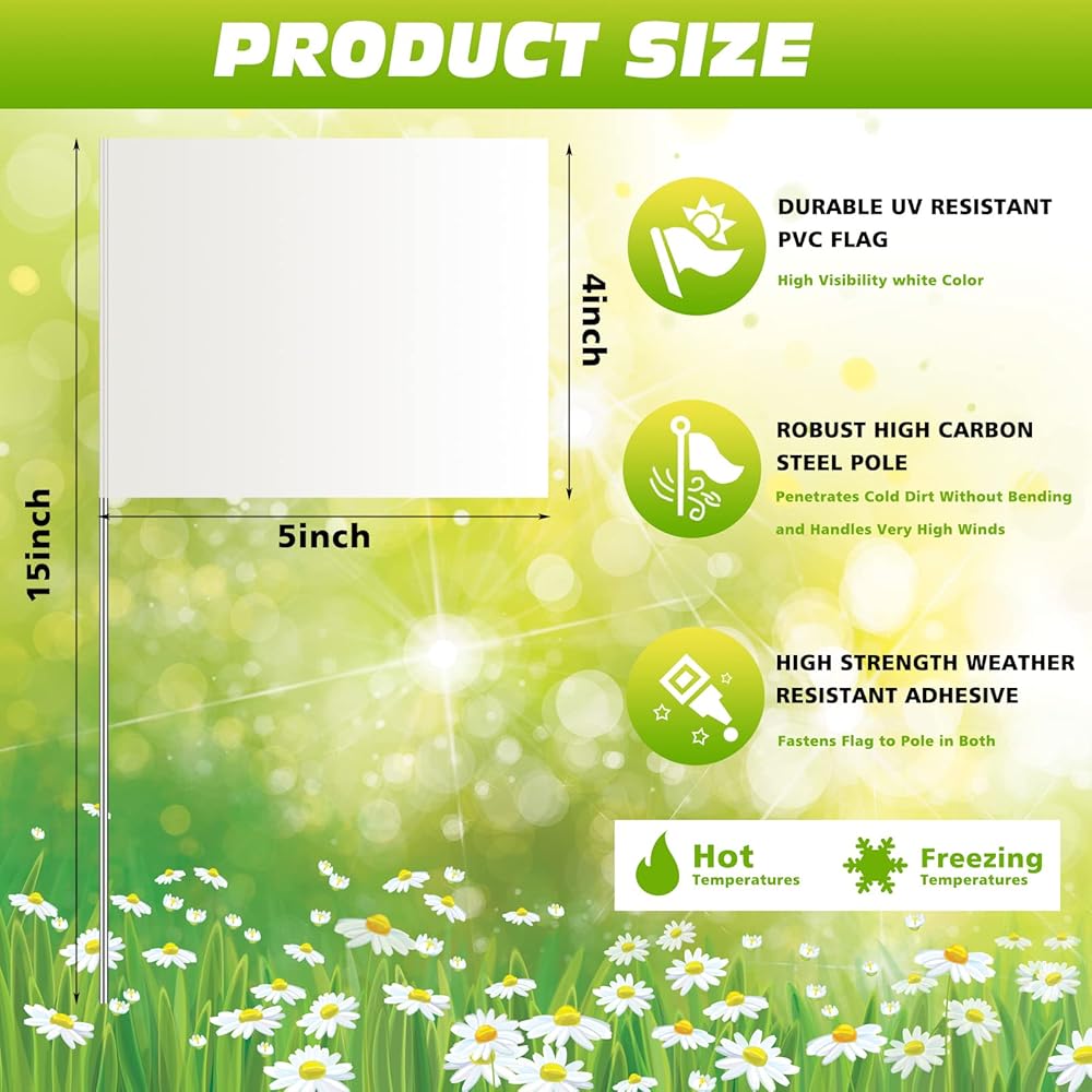 The sprinkler marker flags are able to penetrate soil easily without bending, easy and convenient for you to install, and our marker flags are glued on high strength adhesive, making them reliable in high winds.