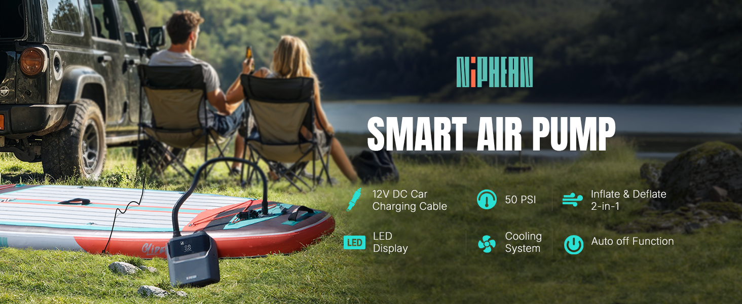 【3 Preset Modes, Simple Operation】No more guessing or fiddling with pressure settings. Niphean paddle board electric pump offers three preset modes—Tent (8 PSI), Paddle Board (15 PSI), and Car Tire (35 PSI)—so you just select the right one and go. It's intuitive, fast, and designed to make inflation effortless, whether you're a first-time user or a seasoned adventurer.