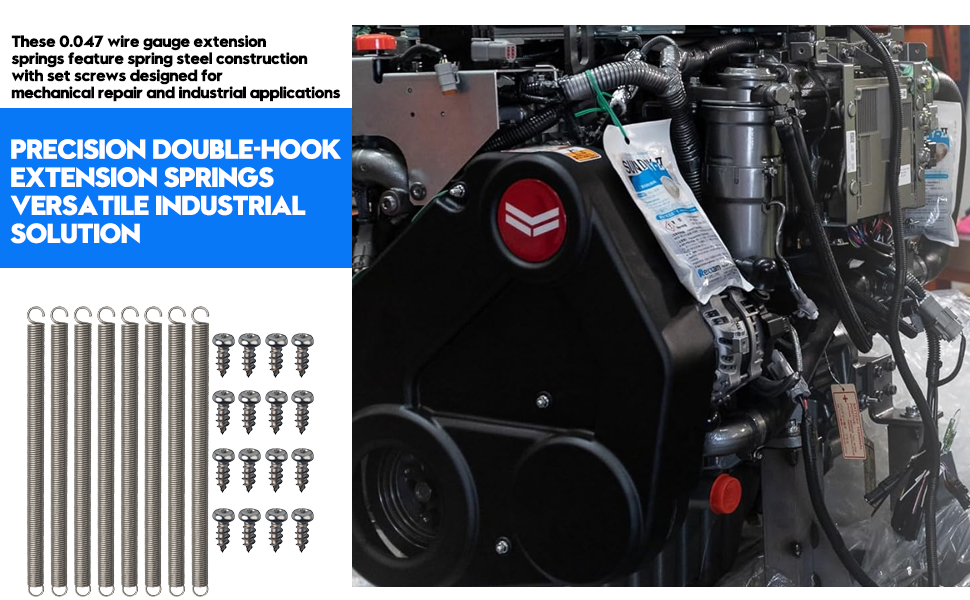 Easy Installation: Symmetrical hooks at both ends ensure effortless mounting and secure attachment to machinery. Simply fix one end, stretch the spring, and hook the other end for quick and convenient installation