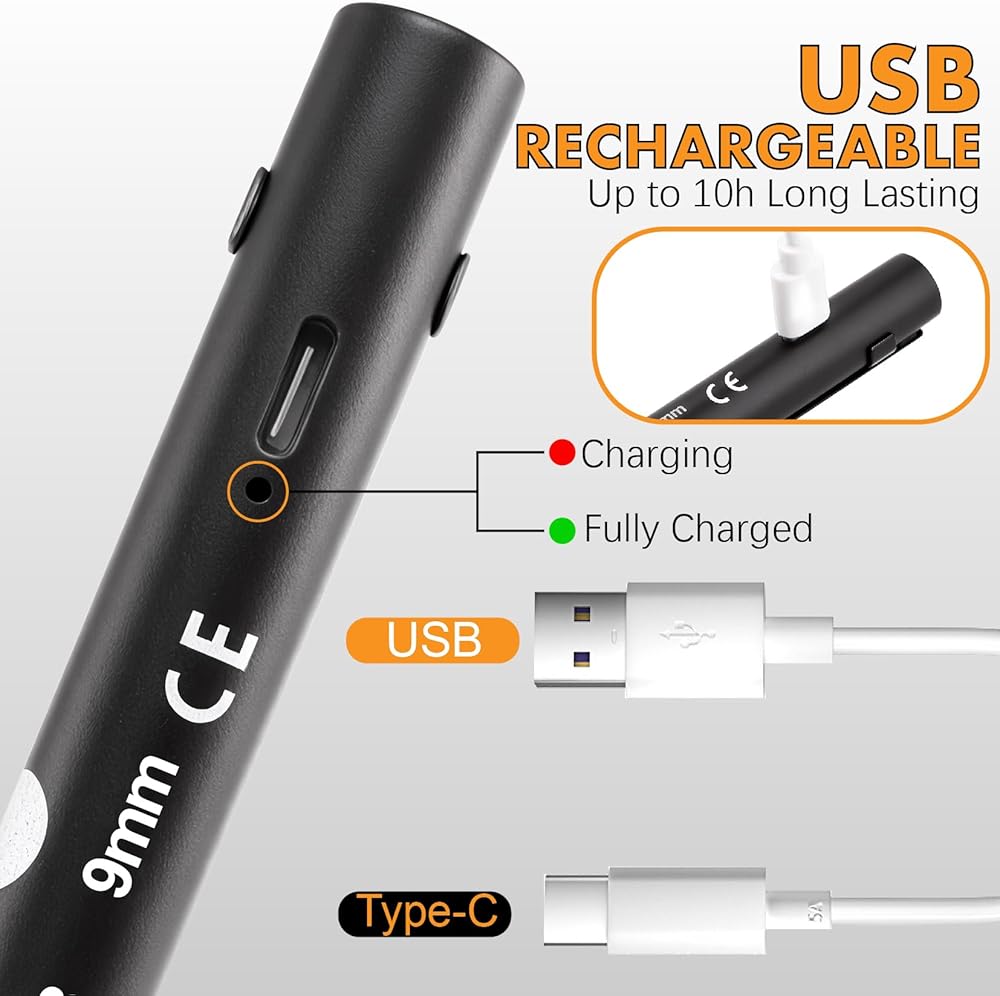 5. Easy Hands-Free Operation – Clip-On Design for Instant, One-Handed Access:Makes examinations efficient with its hands-free clip that activates continuous light. The compact size fits easily in a pocket, and the secure clip allows for instant one-handed access and operation, even when examining uncooperative patients.