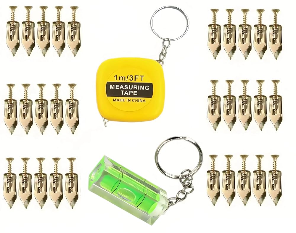 Upgrade your wall installations with our 2025 Premium Self Drilling Drywall Anchors Kit! This all-in-one solution combines 60Pcs heavy-duty metal expansion anchors for drywall (including 30 upgraded sheetrock anchors) with essential installation tools: a 1m tape measure and mini level. Designed for zero-drill hassle, these self-drilling drywall anchors penetrate walls instantly with included screws, eliminating dust and damage. Perfect for hanging TVs, shelves, cabinets, curtains, and décor (holds up to 66LB). The corrosion-resistant zinc-plated steel ensures durability, while the compact tools guarantee precision—making it the ultimate kit for DIYers and professionals!