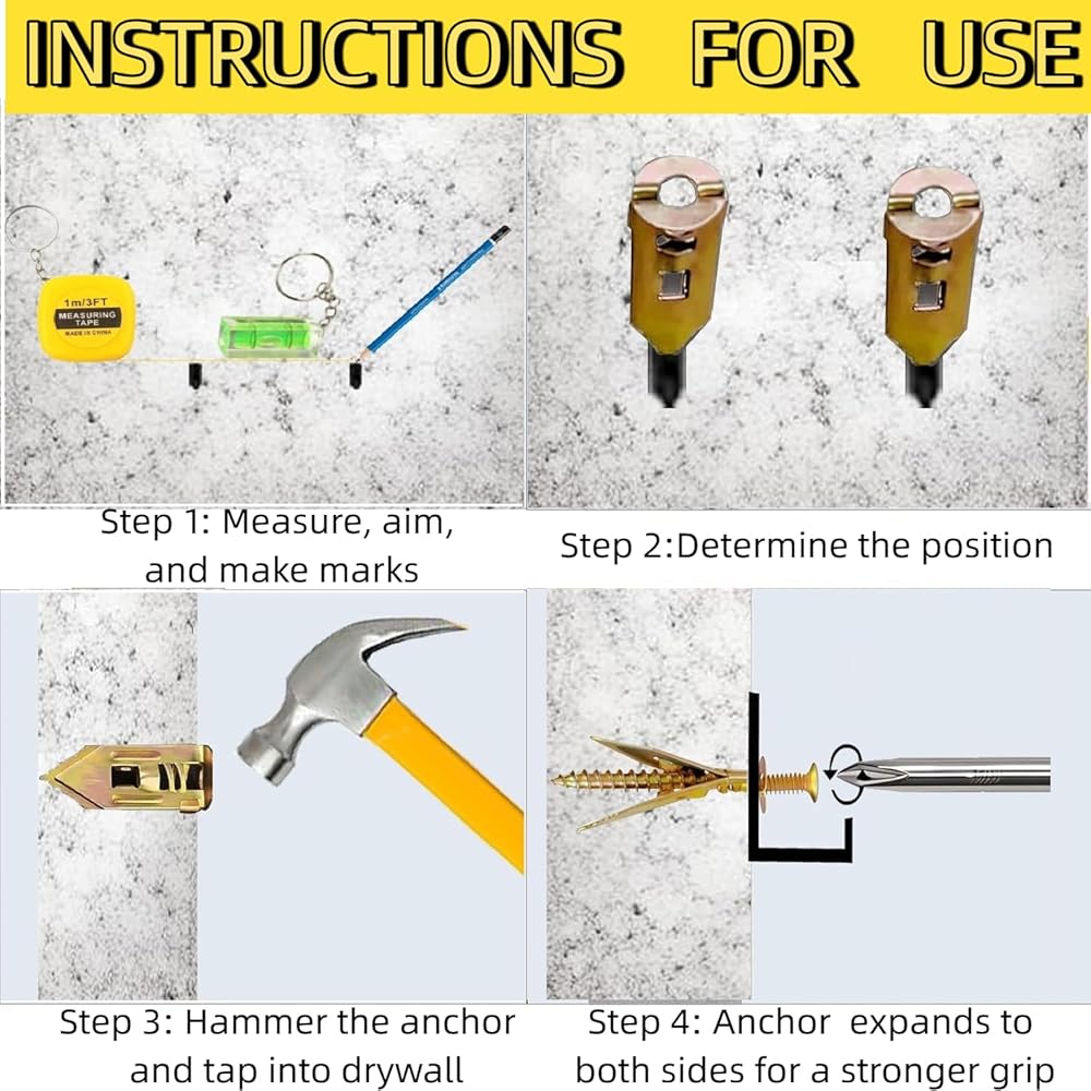 No Drilling, Zero Wall Damage: Heavy-duty self-drilling metal anchors penetrate drywall and plaster instantly with a screwdriver, eliminating messy drilling, cracked walls, and dust for rentals and delicate surfaces