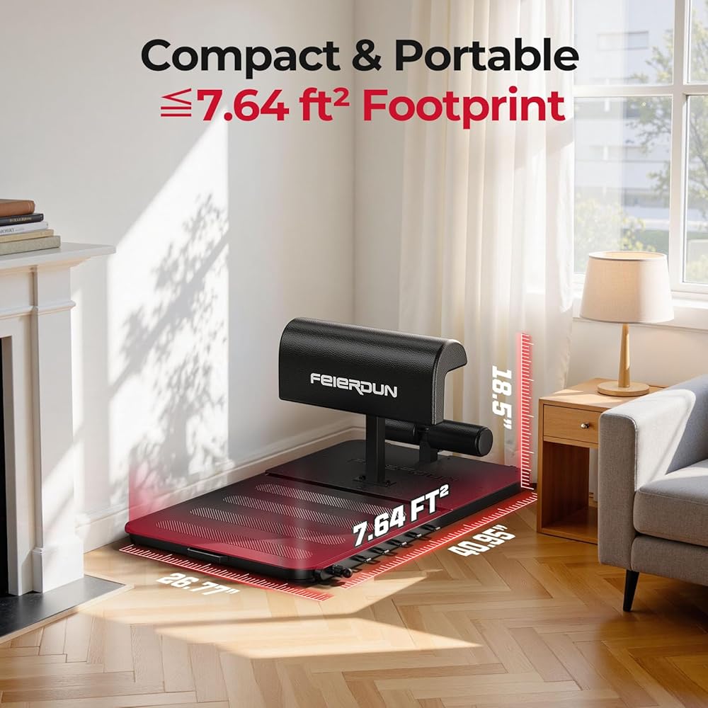 FEIERDUN HT1 Hip Thrust Machine for Home Gym, 350lbs Glute Workout Equipment with Padded Barbell Bar and Resistance Bands, Foldable Hip Thrust Bench for Hip Thrust, Sissy Squat