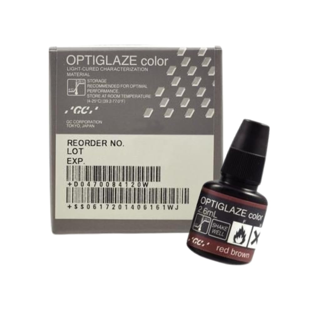 OPTIGLAZE Color is a revolutionary new material developed specifically to stain and glaze your composite, acrylic and PMMA type materials. You can now change shades, shift value, characterize, create effects and glaze all your resin type prosthetics in no time at all. Best of all, offer your dentists and patients a more beautiful and esthetic restoration that will last due to GC's innovative new homogeneously dispersed Nano-filler technology. The versatility of OPTIGLAZE Color will impress you because it adds color, surface gloss and high wear resistance to all your artificial teeth, acrylic dentures, hybrid ceramic crowns, implant retained dentures, composite crowns and bridge, temporary resin crowns and bridges and acrylic permanently fixed with implants.
