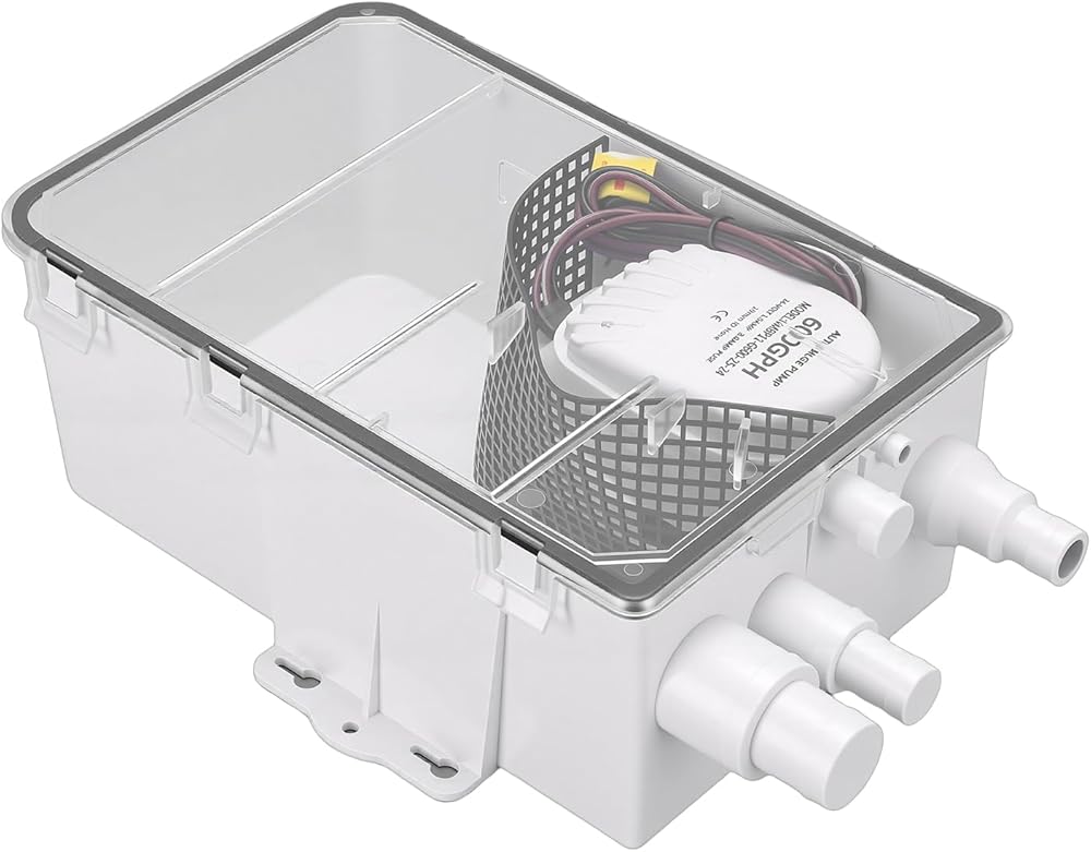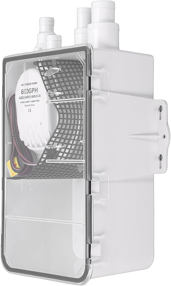 Features: 24V DC electric water pump system, providing powerful drainage performance up to 600 GPH, suitable for shower cabins, sinks, etc. Multiple inlet design for easy installation, automatic drainage function to ensure dry and clean cabin, prolonging equipment lifespan.