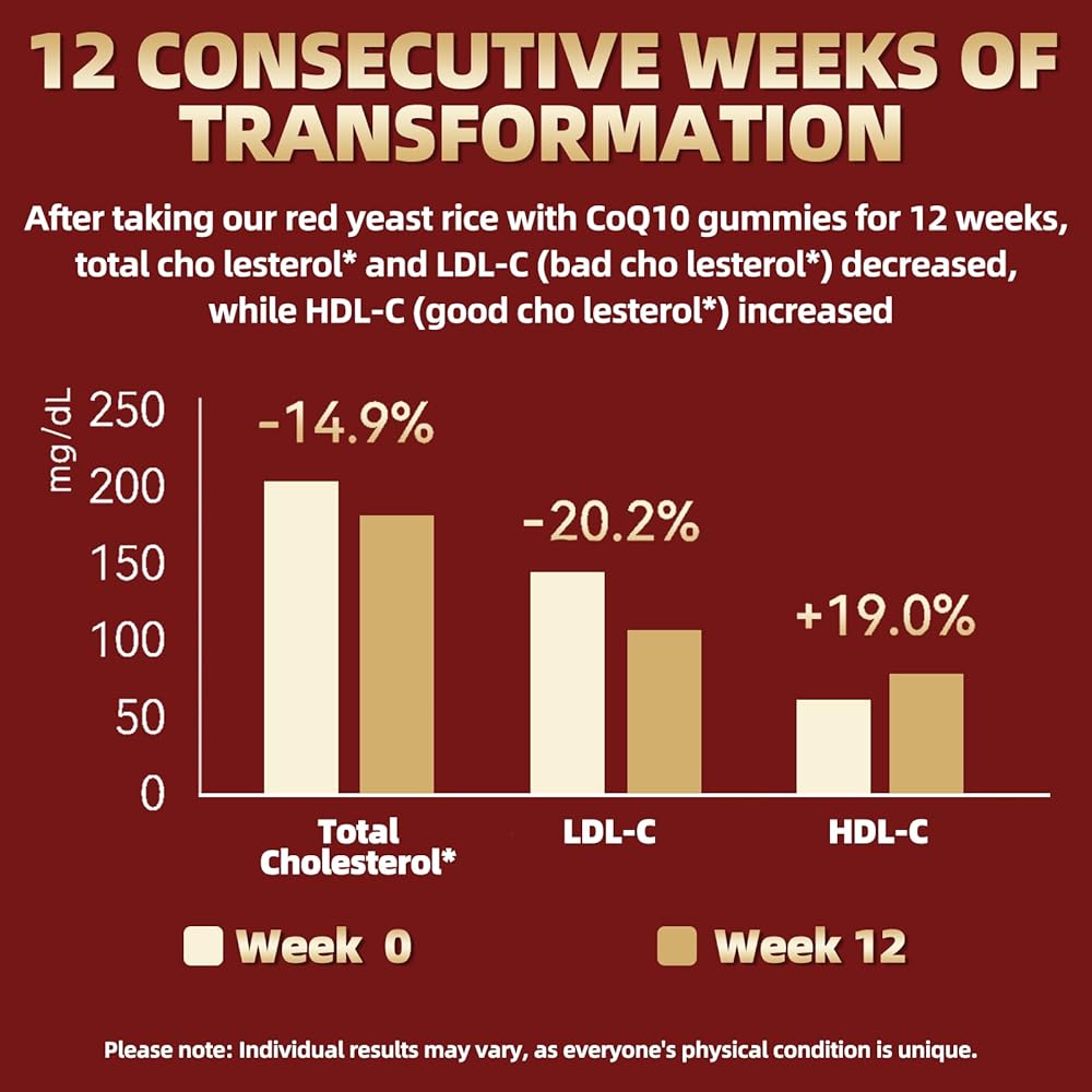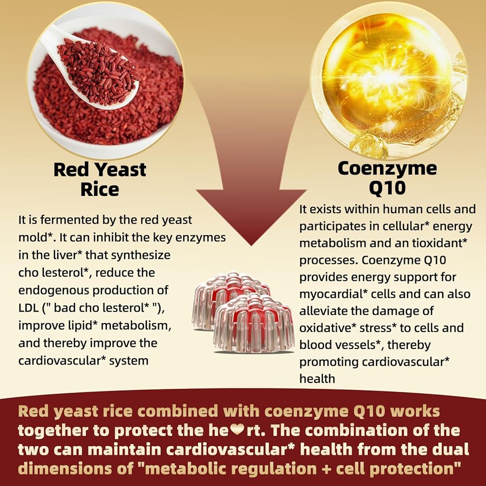 Wide-Ranging Health Suitability: Ideal for middle-aged and elderly individuals looking to support cardiovascular* function" and increase energy. Whether you're a busy professional, an active individual, or someone focused on preventive health, our Red Yeast Rice with CoQ10 Gummies are a convenient addition to your daily routine