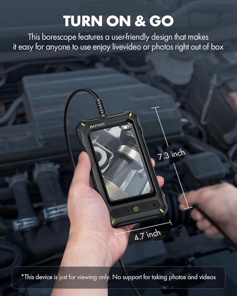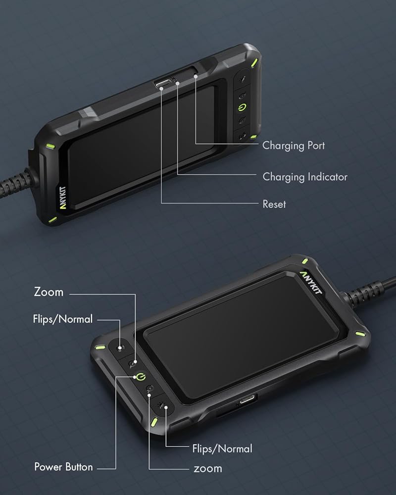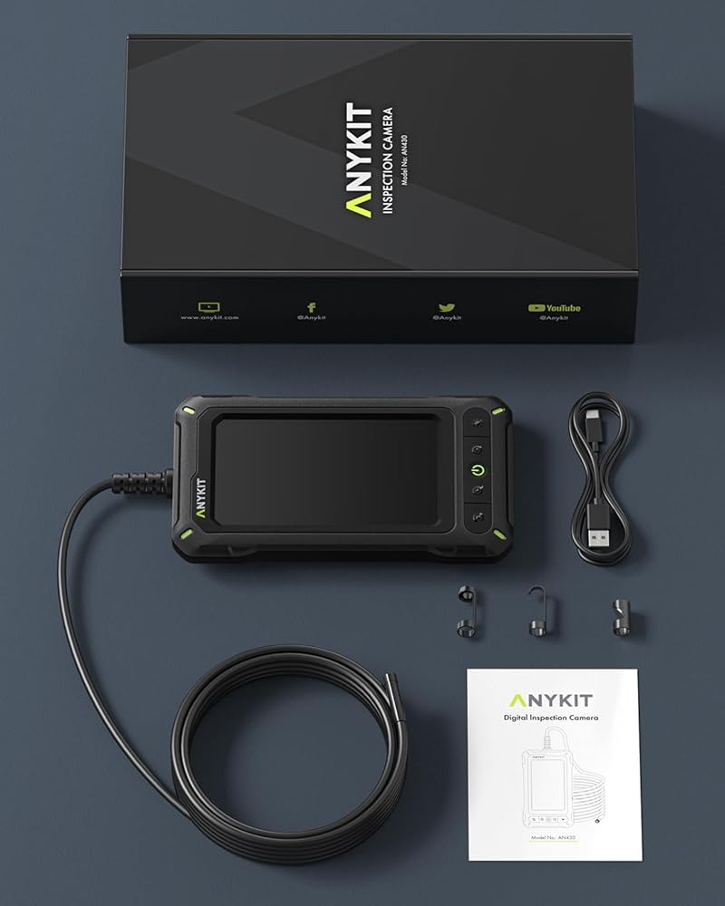 Clear 4.3" IPS screen - Featuring a bright 4.3" IPS screen, this camera provides clear real-time inspections. Its ergonomic design ensures easy handling, helping you diagnose issues quickly