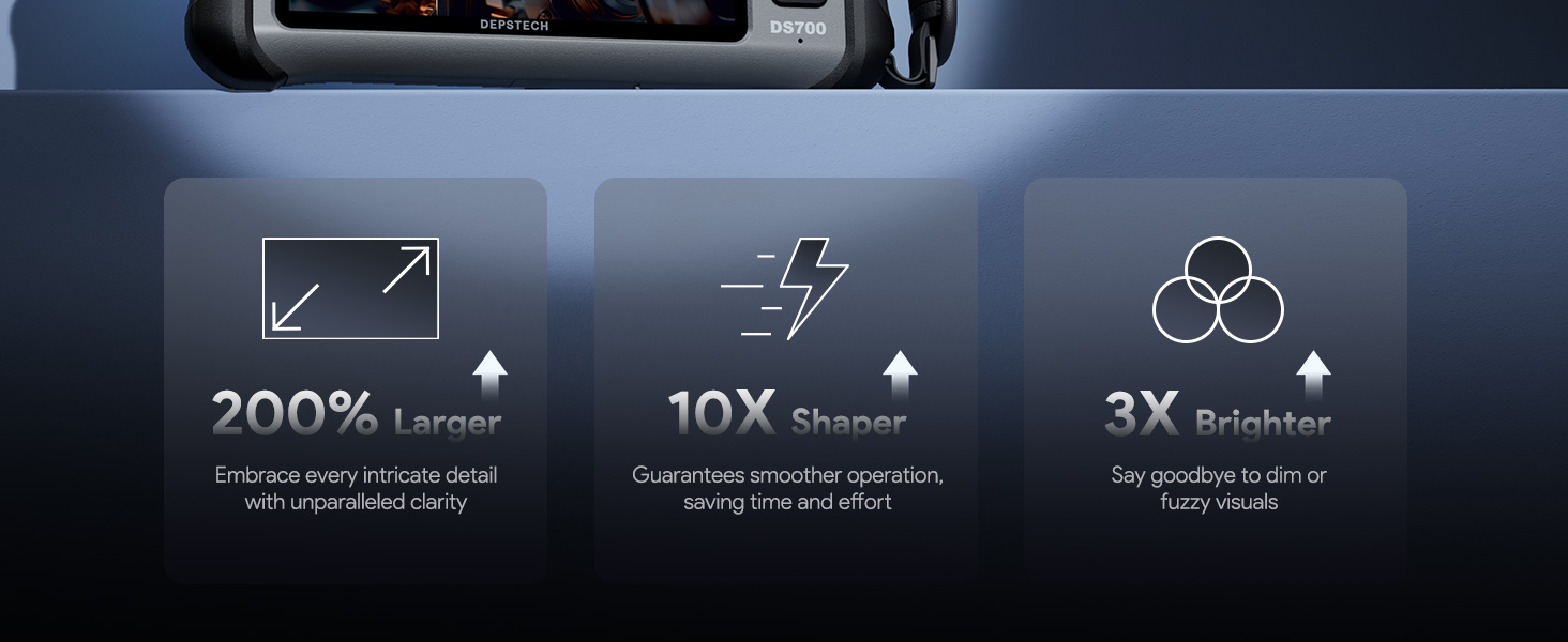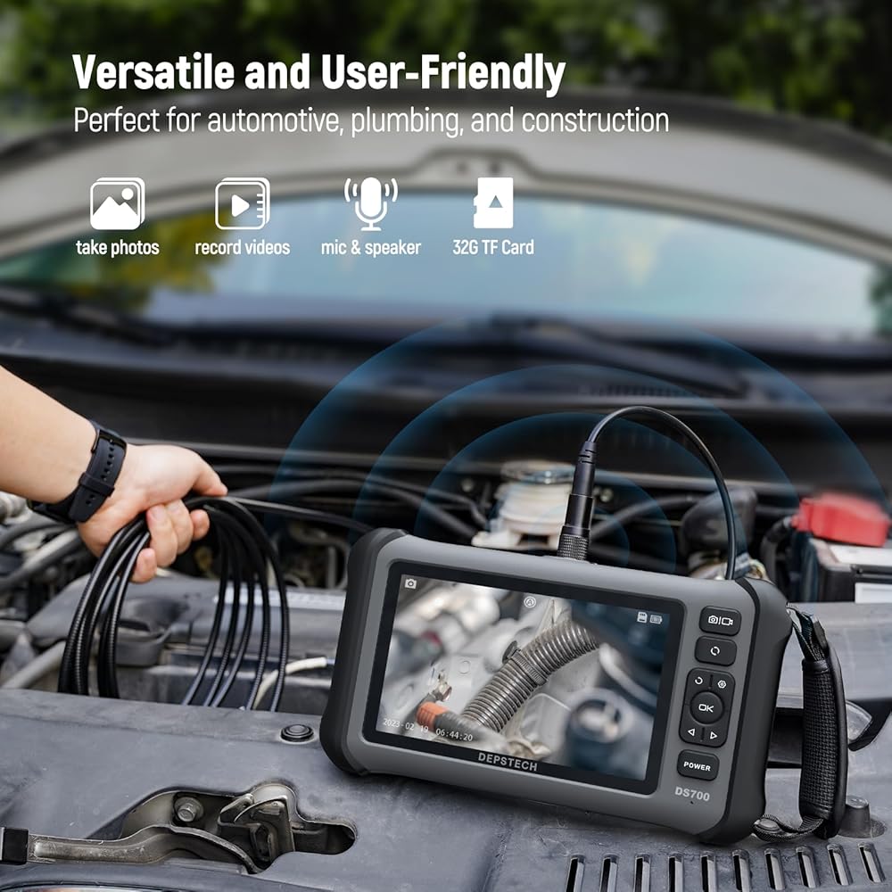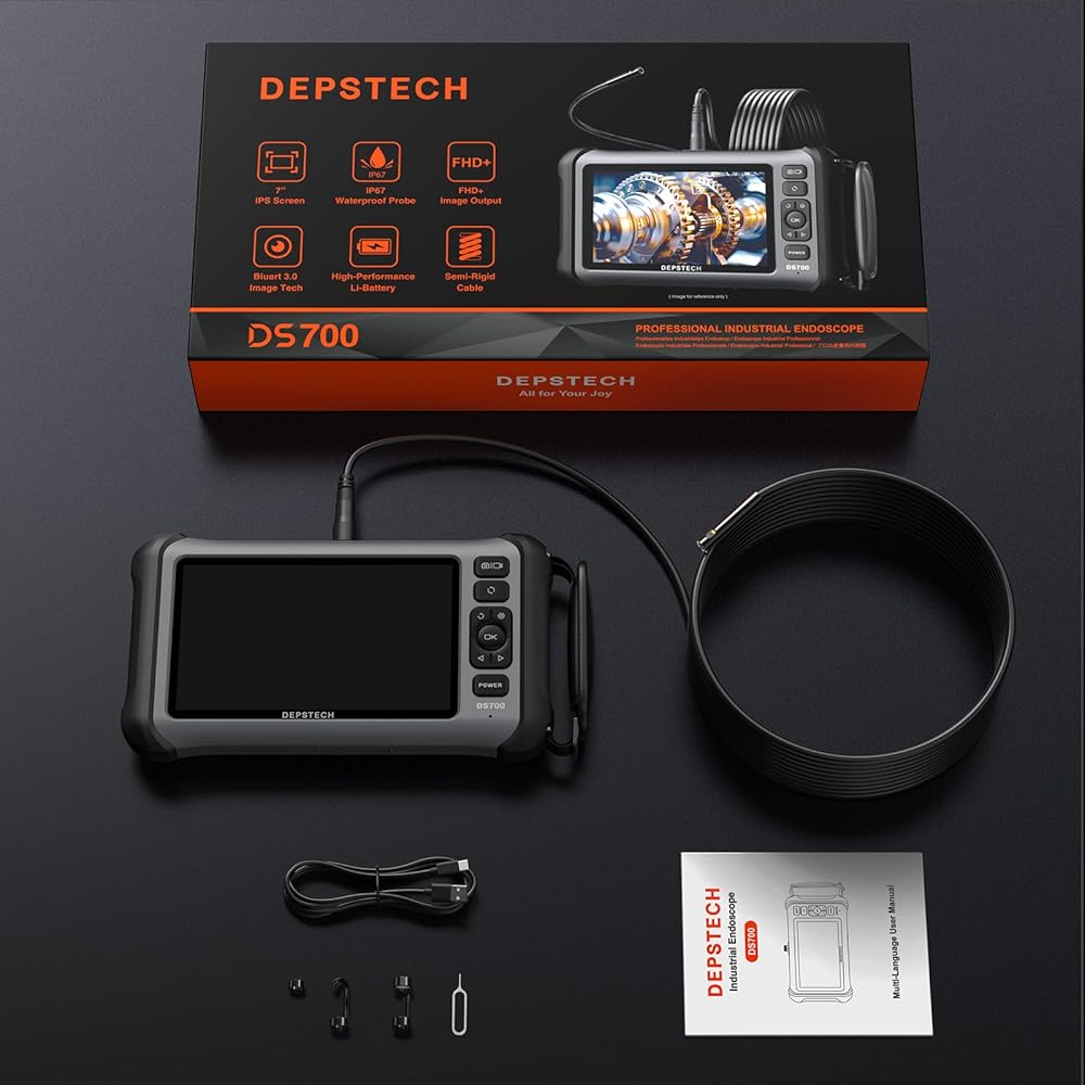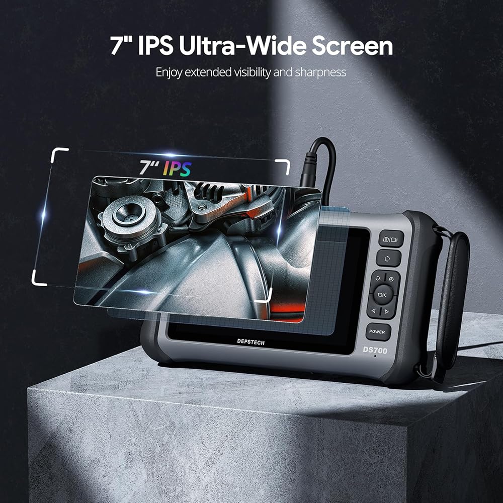 [Professional-Grade Clarity with Triple Lens & Split Screen]: Equipped with three high-definition lenses and a vivid 7-inch IPS display, the DEPSTECH 700SE endoscope delivers multiple viewing angles and split-screen imaging. Easily switch between the main and side lenses without manual adjustment—ideal for inspecting pipes, engines, or narrow spaces with total confidence and zero blind spots