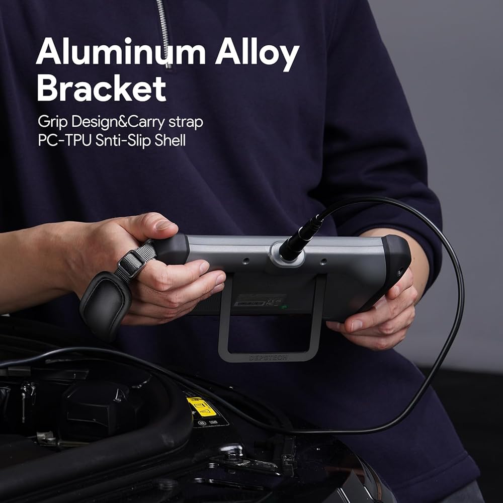 [Easy One-Handed Operation & Hands-Free Use]: Designed for convenience, the 700SE endoscope camera features an intuitive interface with large tactile buttons and a 180° rotatable screen. The included aluminum alloy stand offers stable hands-free positioning, so you can record or inspect with ease—great for DIY projects, home maintenance, or automotive diagnostics