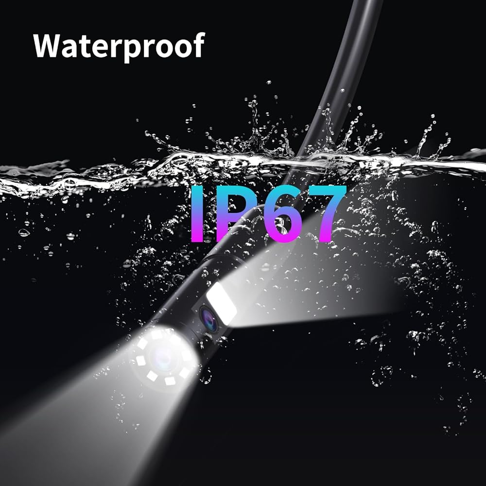 【IP67 Waterproof Snake Sewer Camera】Built for durability, this endoscope camera is IP67 waterproof, allowing it to function effectively in wet conditions or underwater (within a certain depth). The robust material is not only waterproof but also wear- and corrosion-resistant, ensuring longevity even in harsh environments. Its 8mm semi-rigid cable, 10 meters in length, is flexible yet sturdy, making it ideal for accessing tight or hard-to-reach areas