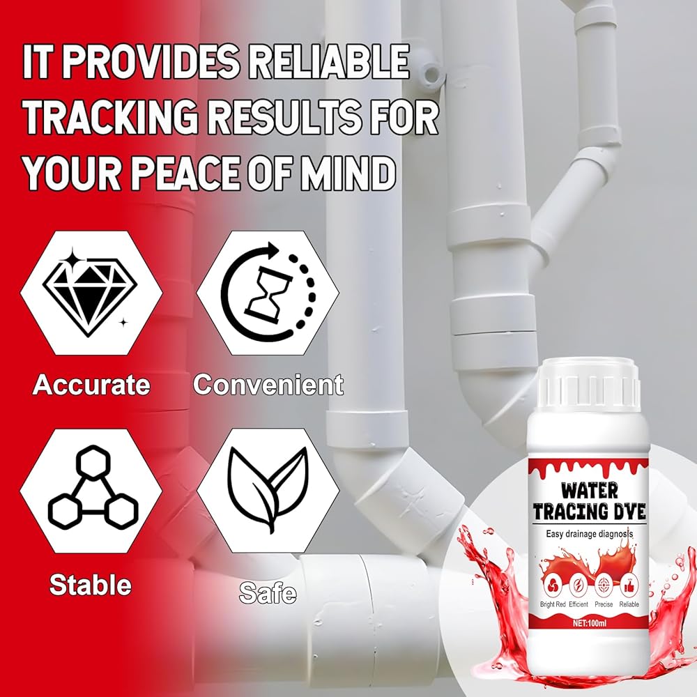 Versatile Applications: Whether you're detecting leaks in bathroom drains, locating water accumulation in flat roofs, or tracing leaks in complex industrial cooling circuits and fuel systems, this red pool leak dye provides accurate and consistent marking results