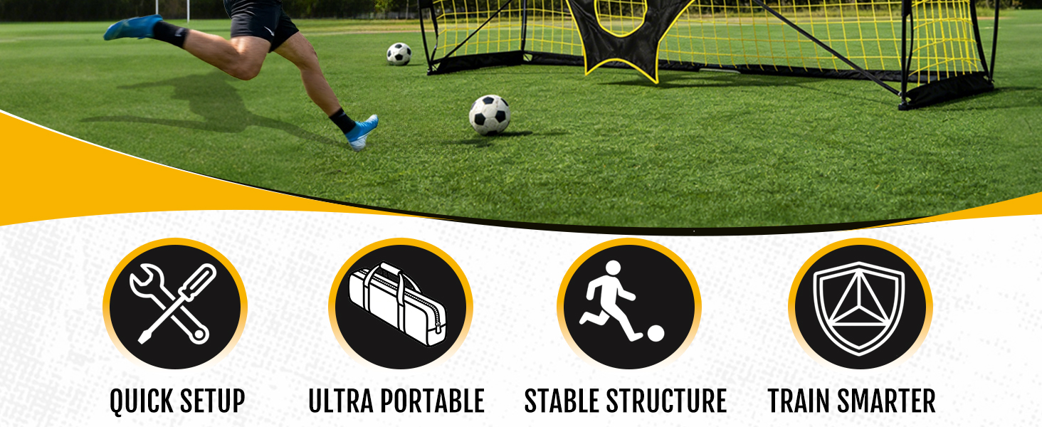 Include Target Sheet & Training Cones: Train smarter with the included 10-hole precision target sheet, designed to sharpen your shooting accuracy and ball placement. Easily attach it to isolate corners and simulate game situations for focused practice, then remove it in seconds when it's time to play. Included ten training cones for solo drills and team training.