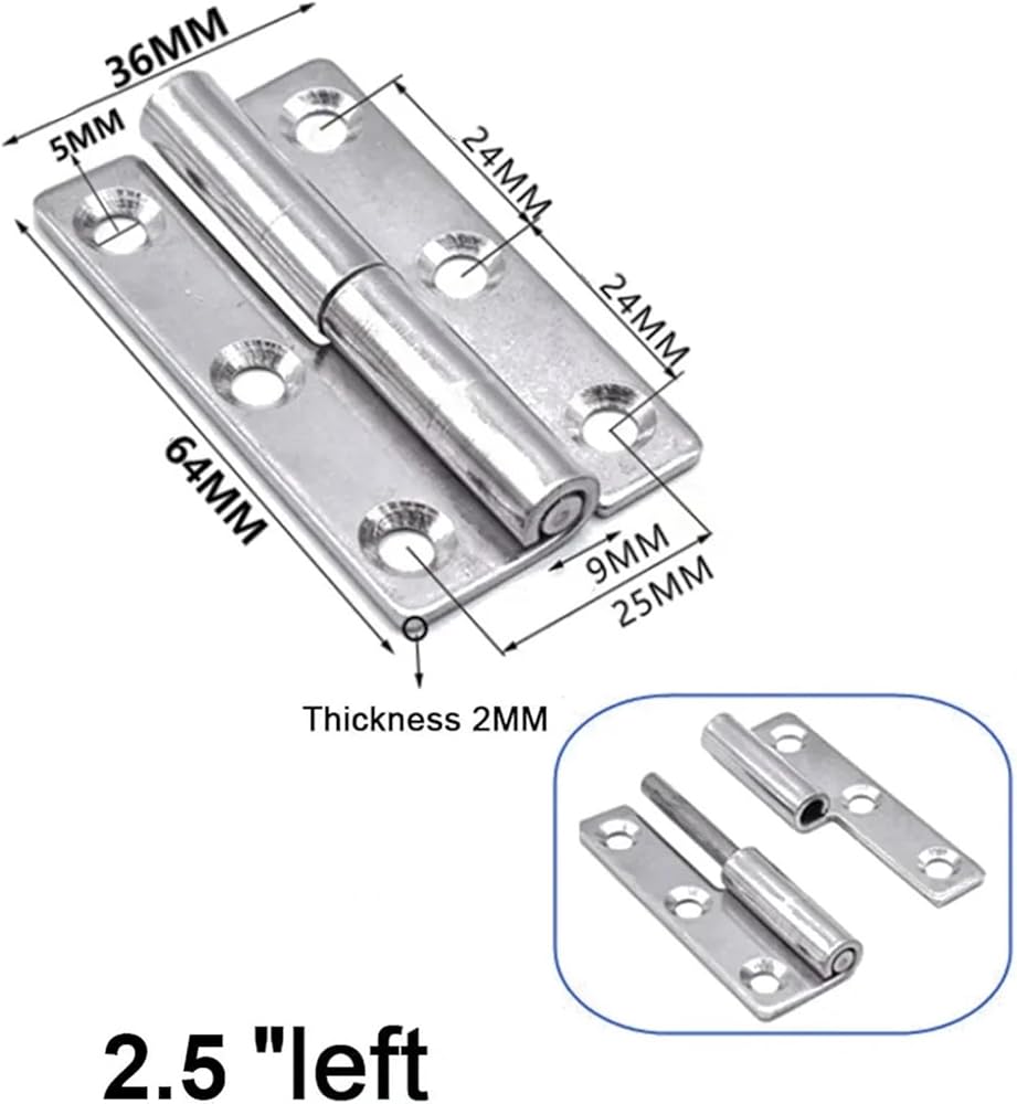 Detachable Hinge 2/2.5/3/4 Inch Stainless Steel Flag Shape for Joint Removable Hardware 1Pcs(2 inch Left)