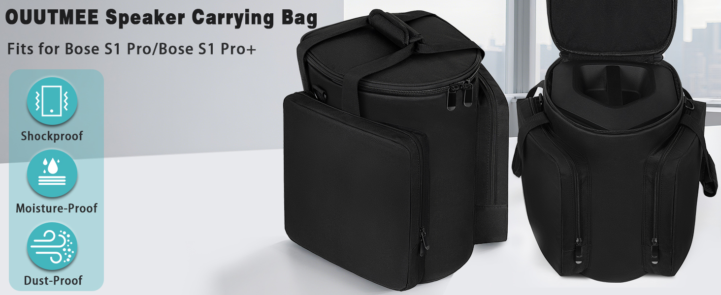 【PERFECT FIT & PROTECTION】 This speaker carrying bag is designed specifically for Bose S1 Pro and S1 Pro+ speakers. Featuring 600D fabric + soft velour lining, it resists drops, bumps, scratches, dust and moisture, ensuring that your speakers arrive safely in any environment