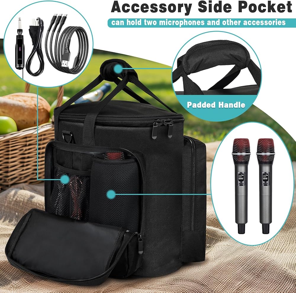 【LARGE CAPACITY & STORAGE DESIGN:】This large-capacity storage bag comes with dedicated compartments: the main compartment provides cushioned protection for the S1 Pro/Pro+ speakers, with an additional bottom pad, and two convenient side pockets on either side to securely organise and carry your microphone, charger, data cables, mobile phone, and all necessary accessories