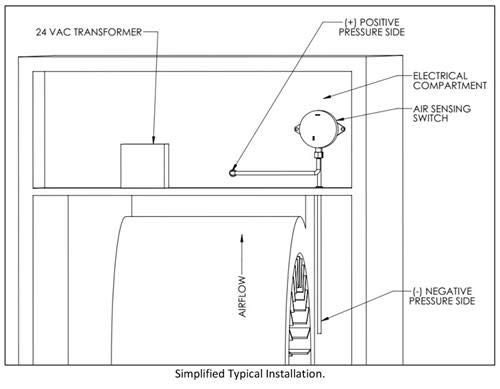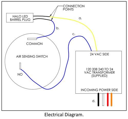 Used with HALO-LED Installed on Variable Speed Blowers and Communicating Thermostats. When using the HALO-LED on an HVAC unit utilizing a variable speed fan or ramping motor with communicating thermostats, the RGF Air Sensing Switch Kit (HLED-AS) or equivalent may be used. The HALO-LED is designed to power on and off with the blower of the HVAC. Unlike the REME HALO, the HALO-LED has a longer life with the power cycling on and off as needed. In order to tie the incoming power of the HALO-LED with the HVAC blower power, an air sensing switch may be used.