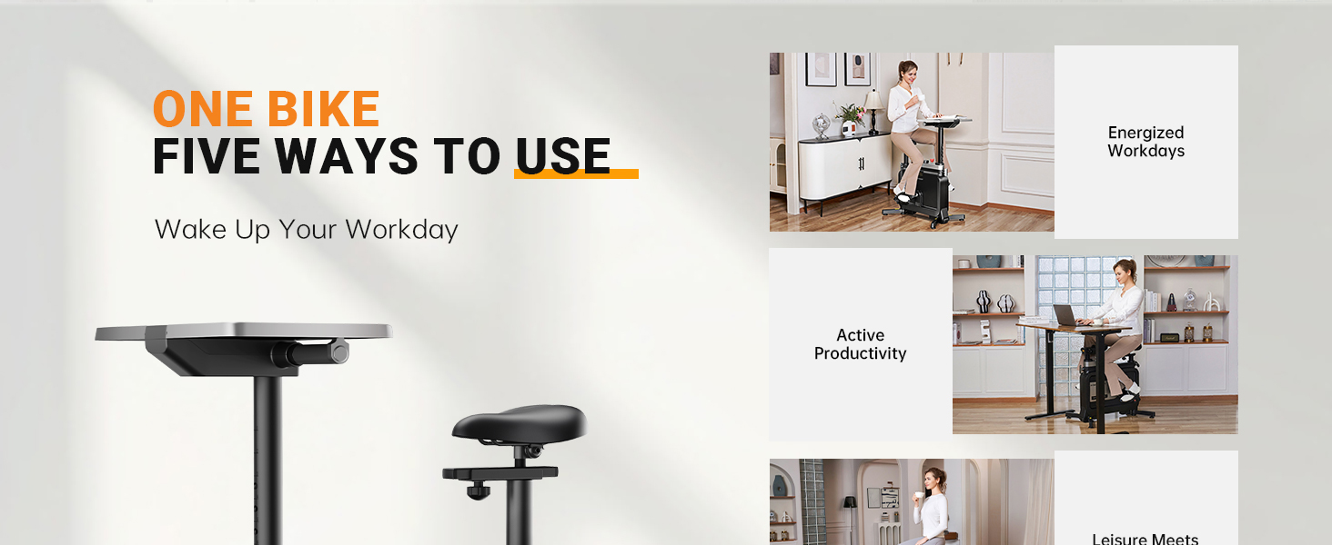 【Versatile Use for Fitness and Office Work】 Desk Exercise Bike Indoor, designed to seamlessly blend fitness with daily life. Attach the desktop for cycling while working, or detach it for use with a standing desk. Effortlessly switch between work, exercise, and entertainment.
