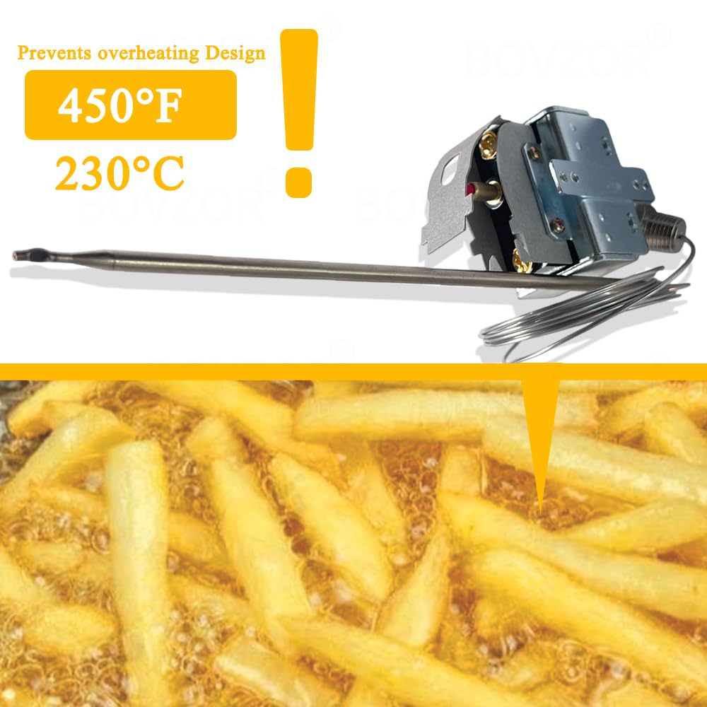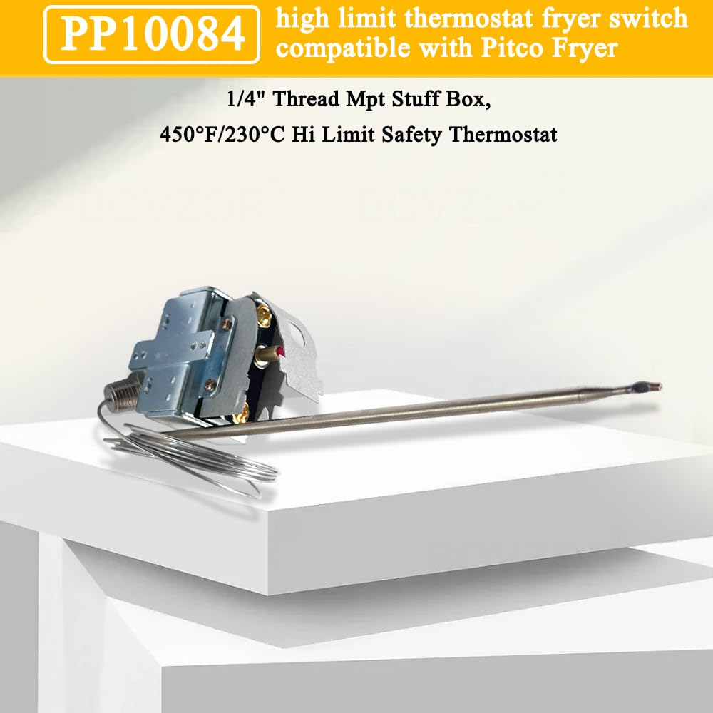 【Direct Replacement & Critical Safety Protection】 This BOVZOR PP10084 is a high limit thermostat engineered as a direct replacement for the OEM part 4CH4002-R (5225-11B). It serves as a crucial commercial fryer safety switch 450°F, automatically cutting off power when oil temperature exceeds 450°F/230°C to prevent fire hazards and equipment damage, ensuring compliance with safety standards for Pitco fryers and other commercial deep fryers.
