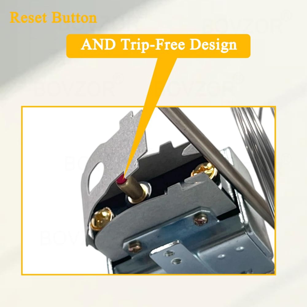 【Manual Reset for Intentional & Safe Restart】 Features a reliable manual reset button design. After tripping, the switch will not automatically reset, requiring a manual press once the temperature drops safely (~50°F). This “trip-free” design prevents accidental restart, allowing technicians to diagnose and fix the root cause of overheating, making it a safe and reliable fryer high temp cutoff switch replacement.