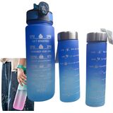 3-in-1 Stackable Water Bottle Set (1000ml/600ml/300ml) with Time Markings, Motivational Quotes, Leak-Proof, BPA-Free, for Sports, Gym, and Daily Hydration
