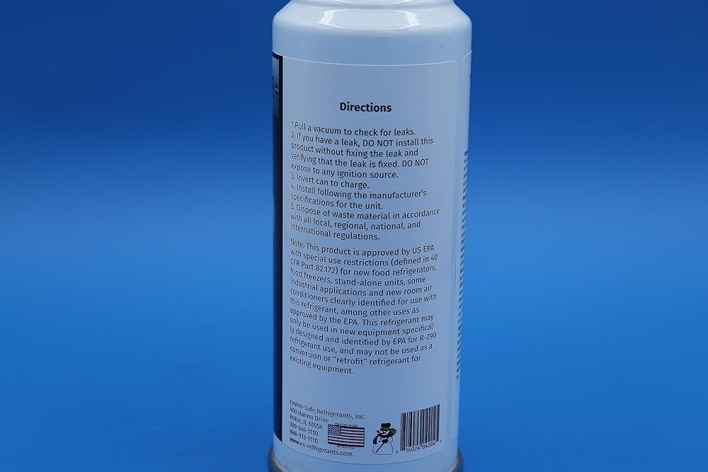 EPA approved R290 for use as per EPA regulations 40 CFR Part 82.17 Designed for use in refrigeration units calling for R290 May be used in domestic refrigerators, freezers, dehumidfiers and window ac units Also used in industrial applications: ice machines, grocery stores freezers, refrigerators, restaurant equipment, wine coolers, beer kegs, soda machines, drinking fountains, etc. Proud to be a family owned business with over 22 years of experience! The oldest hydrocarbon refrigerant manufacturer in North America. This product is flammable and you must use caution when installing this product. This product is flammable to open flame or spark and is not intended for use in systems designed for non-flammable refrigerants.