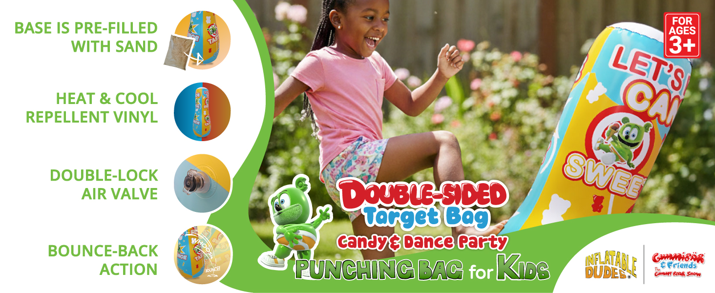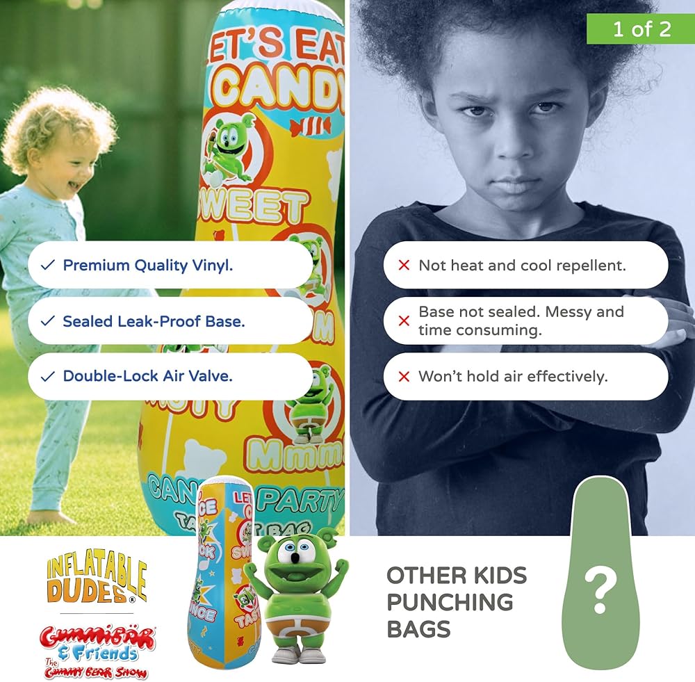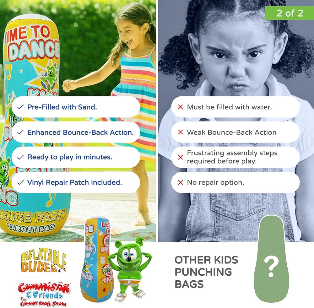 Bonus: Repair patch is included for our Gummibär & Friends inflatable. Whether your child is practicing punches on our kid punching bag inflatable or using it as part of kids party games, this inflatable toy is made to last.
