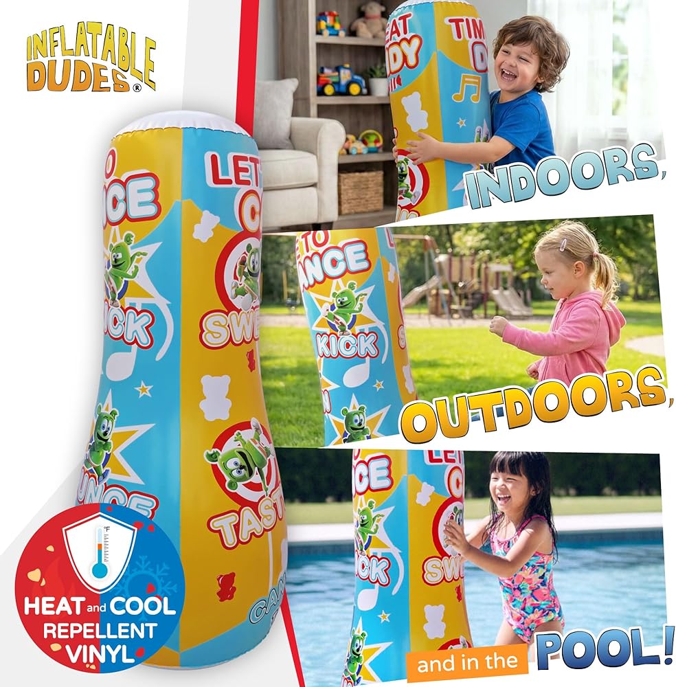 Gummibar Inflatable Punching Bag for Kids: Height is 47 Inches. Weight is 7.67 lbs. This is a top toddler punching bag with Enhanced Bounce-Back Action. Perfect for ages 3-11. A great choice for a kids punching bag inflatable that promotes physical activity.