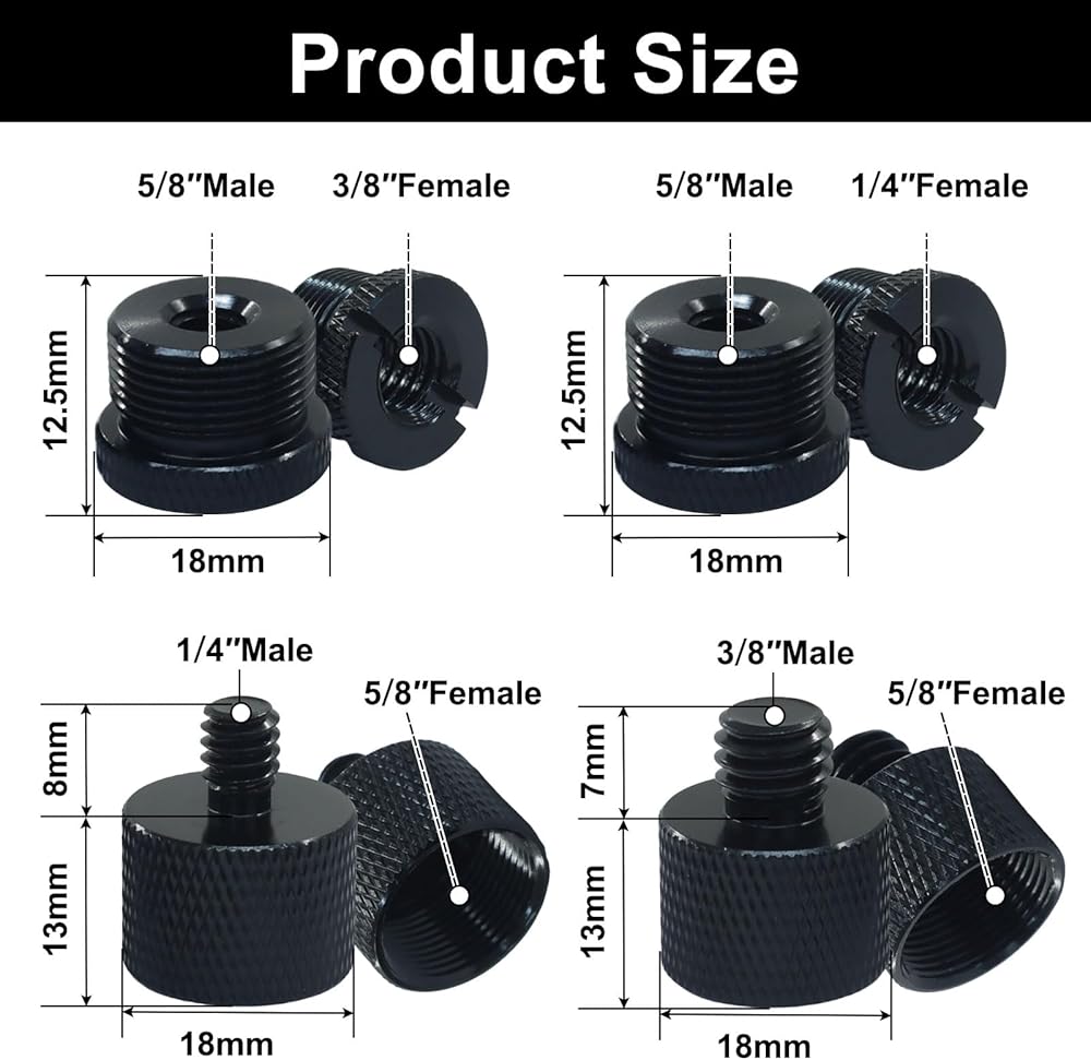 The thread adapters work with most mic stands, recorder stands, camera stands, mic clips, and other equipment with matching threads, offering versatile usage.