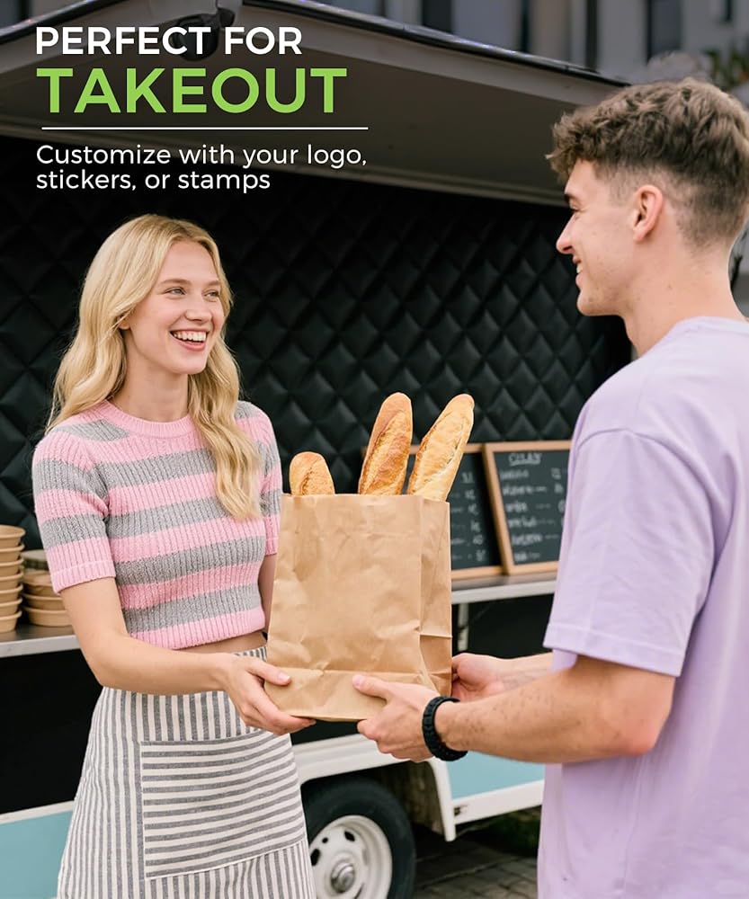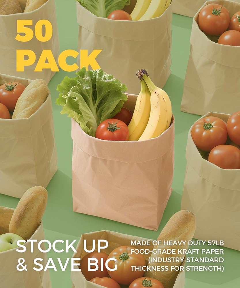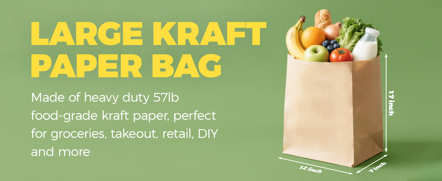 Heavy Duty Paper Bags: Made from thick kraft paper with reinforced bottoms. Holds up to13 lbs when hand-carried and a sturdy 22 lbs when cradled in your arms.—perfect for groceries, takeout, or everyday use