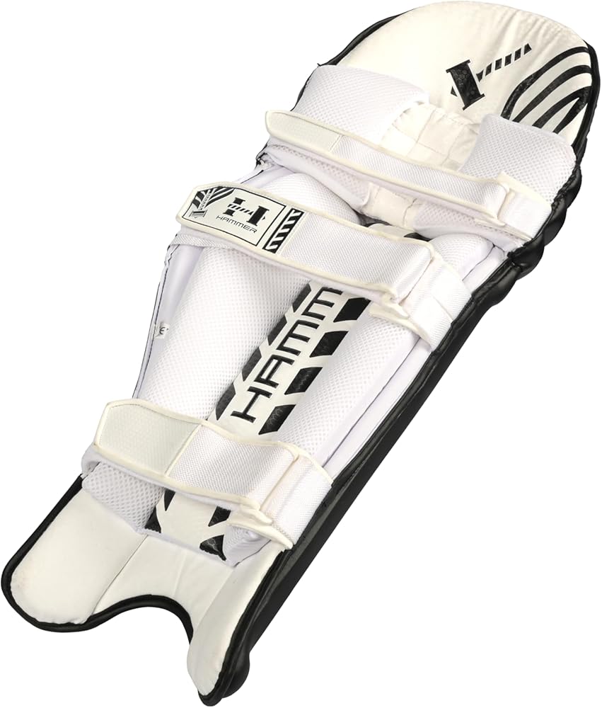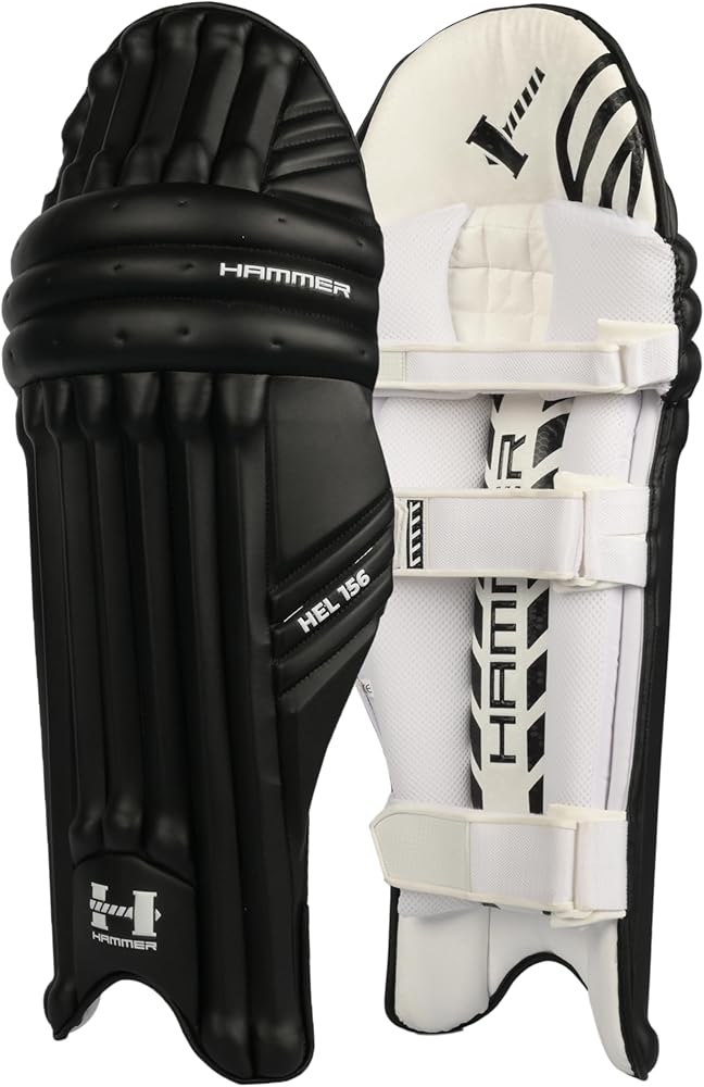 Hammer Hel 156 Batting Pads offer premium protection, enhanced comfort, and high-performance design for exceptional performance on the cricket field.The Hammer HEL 156 delivers comprehensive protection through its traditional 7-cane construction while maintaining mobility with Litefoam knee rolls. The combination of premium PU exterior and specialized bolster design offers excellent impact resistance without sacrificing comfort during extended innings.Branding: Fully embossed logos in front and back, including the 'H' logo, model name, and Hammer embossing on the 'T' part, reflecting a commitment to excellence.Material: Crafted from premium thick PU on the front and football design PU on the back for superior comfort to your shins.Straps: Equipped with three secure-fit straps, featuring embossed branding on the center strap. A small HD foam-padded portion below the strap enhances comfort. The hygroscopic material on the backside straps absorbs sweat.Front Look: Traditional reinforced 7 cane and HD EVA construction with side wing provides robust protection. The top hat is also made with cane and HD EVA backing for enhanced protection.Knee: These pads use Litefoam material in three sections of the knee roll, offering superior shape and protection with less weight for improved balance. Shin Bolsters: Equipped with tri-flex shin bolsters with PU and high-quality air mesh facing. Back Hat: HD foam provides good protection without compromising comfort, with the Hammer logo embossed and lining details. Back Side Knee: Features a hard plastic cup with HD foam in three sections for enhanced comfort, designed with foam for soft filling.