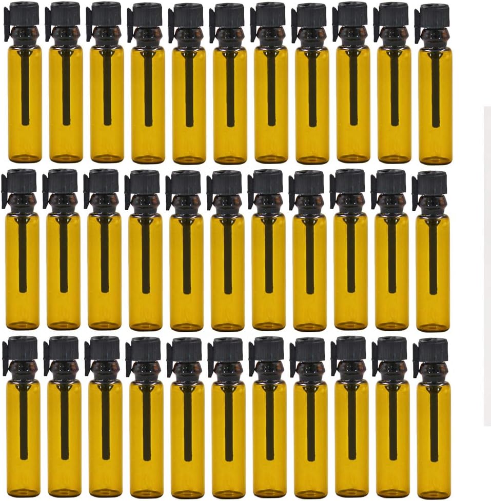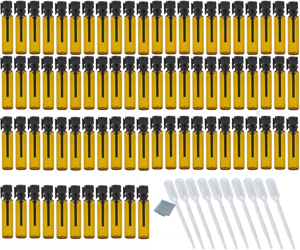 Elfenstall - Portable 100pcs 1ml (1/4 Dram) Amber Mini Glass Bottle 1cc Vial Small Essential Oil Perfume DIY Liquid Sample Bottle For Travel Makeup Party Friend Sample free 10pcs 0.5ml Dropper Pipette