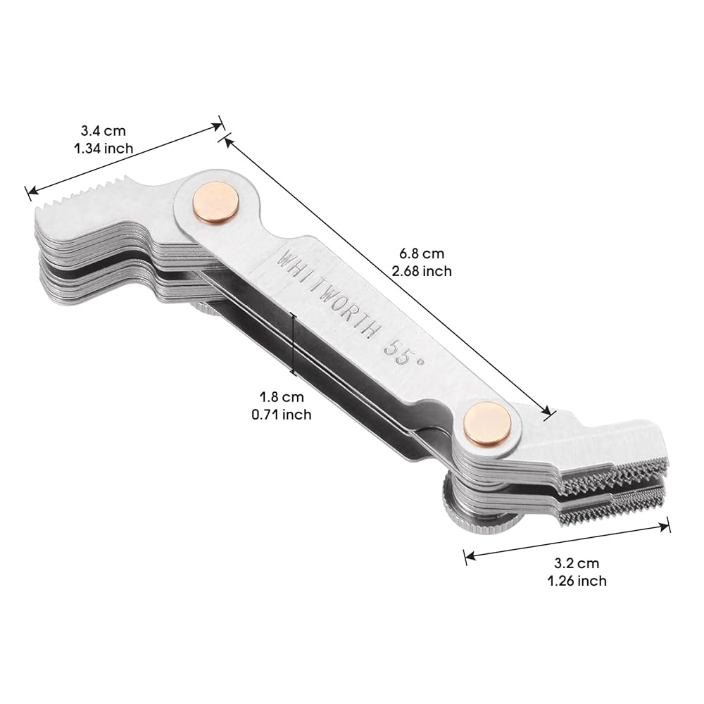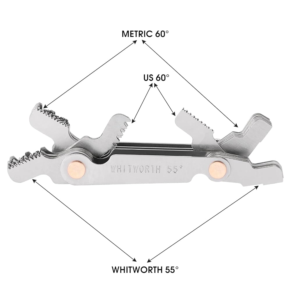 - All-in-One Thread Checker Gauge : Measures Metric (60°), British Whitworth (55°), and US SAE (60°) Threads with a Single Compact Thread Gauge