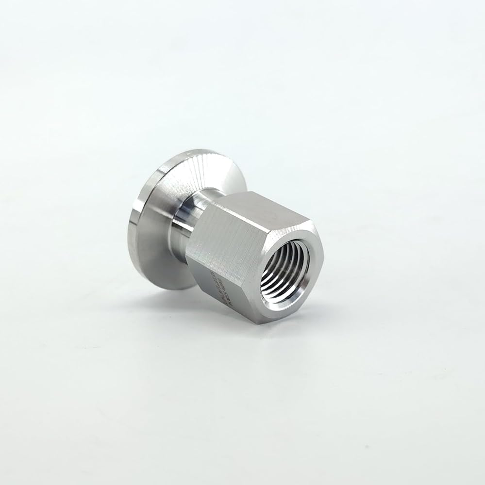 This KF16 to NPT Female adapter provides a reliable connection solution for vacuum systems and fluid transfer applications. Featuring an ISO-KF NW-16 flange on one end and a female NPT thread on the other, this versatile fitting allows you to seamlessly integrate different connection standards within your setup. Constructed from durable stainless steel 304, this adapter offers excellent corrosion resistance and longevity, making it suitable for demanding industrial and laboratory environments. The precision-machined design ensures a secure, leak-tight seal when properly installed. Whether you're building a new vacuum system or modifying an existing configuration, this adapter simplifies the process of connecting KF-flanged components to NPT-threaded equipment. The robust stainless steel construction withstands repeated use while maintaining dimensional stability across a wide range of operating conditions.