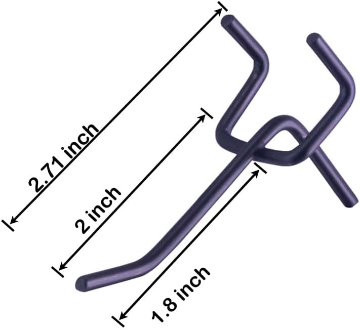Unbreakable straight pegboard hooks – The entire peg board hook is 2 in. in length, well made with finely polished and plated steel, every hook has passed strict tests in factories, which maintains and guarantees the excellent performance in applications
