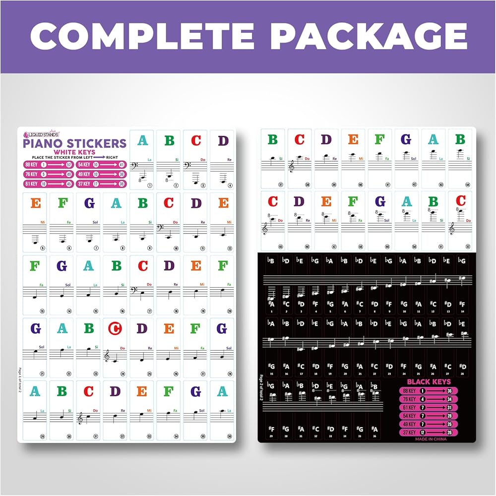 Liquid Stands Piano Note Stickers for 37-49-54-61-88 Keys – Piano Keyboard Stickers for Learning, Clear Waterproof Vinyl for Black & White Keys – No Fading, Strong Adhesive, Leaves No Residue