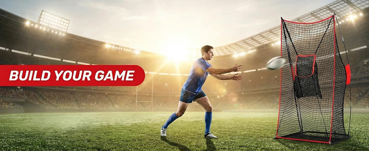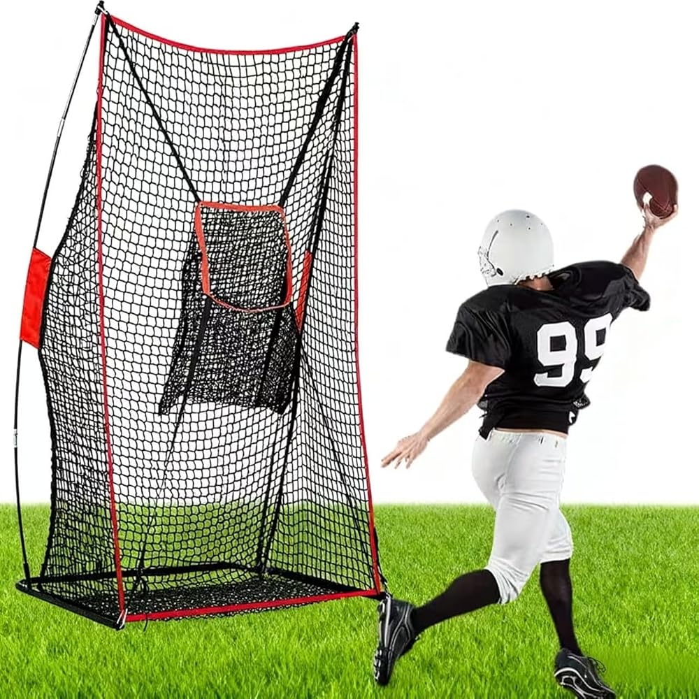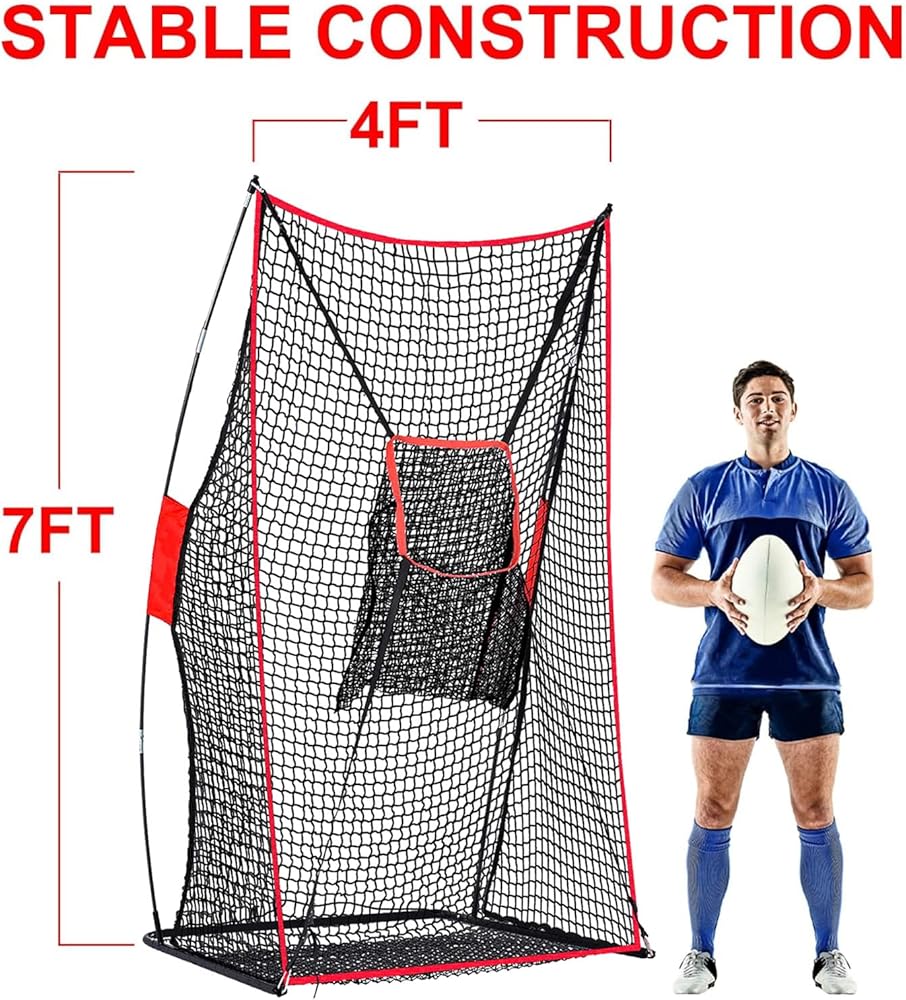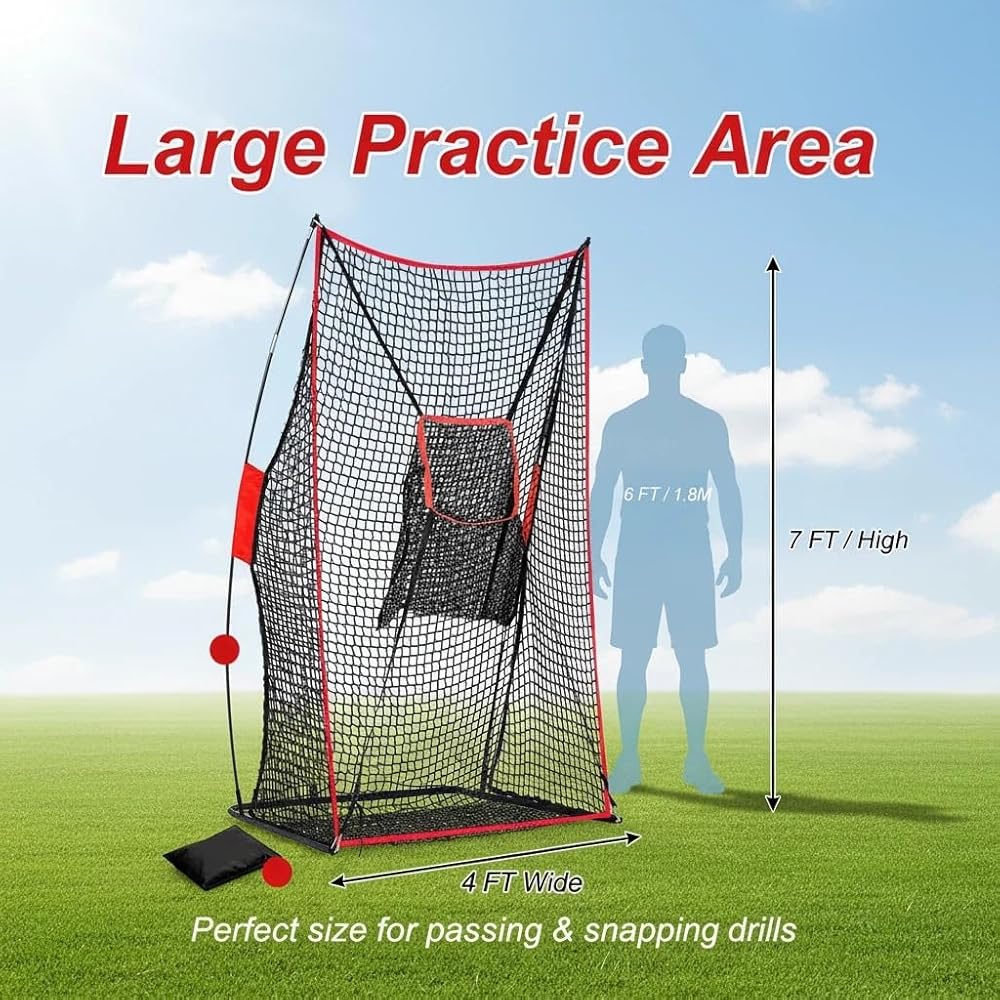 Durable 4x7ft Football Training Net: Built with heavy-duty mesh & strong fibreglass poles, this 4x7ft kicking net withstands powerful kicks. Includes sandbags for ultimate stability during punting and passing practice on the field or in the backyard.