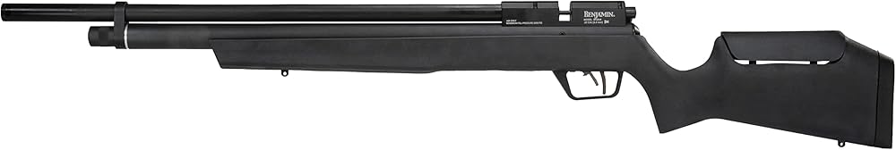 The loudest sound you'll with a Benjamin Marauder is the pellet hitting the target. With virtually no recoil, very little noise and tack-driving accuracy, the newest Marauder goes lightweight with an all-weather synthetic stock, featuring an ambidextrous raised comb. Well-balanced for carrying in the field, this powerful PCP-powered air rifle is the quietest and most accurate in its air rifle class delivering speeds up to 1000 fps. The two-stage, adjustable, match-grade trigger system helps to make every shot smooth, while the innovative 10-round magazine allows for fast follow-up shots. With the built-in pressure gauge and quick-disconnect Foster fitting, refilling is quick and easy. Built for hunting, great for target shooting too.