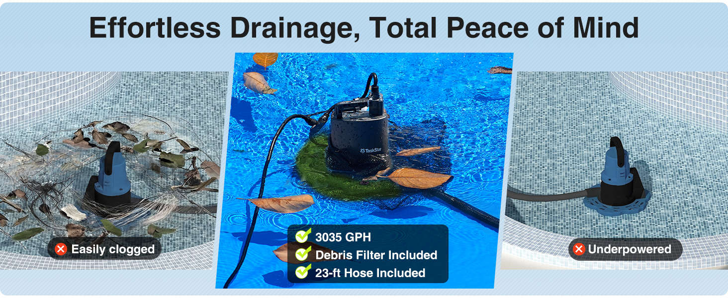 3-YEAR EXTENDED WARRANTY & DEDICATED SUPPORT: Invest in peace of mind with TaskStar's commitment to quality. We back our automatic pool pump with an industry-leading 3-Year Manufacturer Warranty and lifetime technical assistance. Our responsive customer care team is on standby to provide troubleshooting, hassle-free replacements, or usage guidance, ensuring your winterizing and water removal needs are always met without interruption.