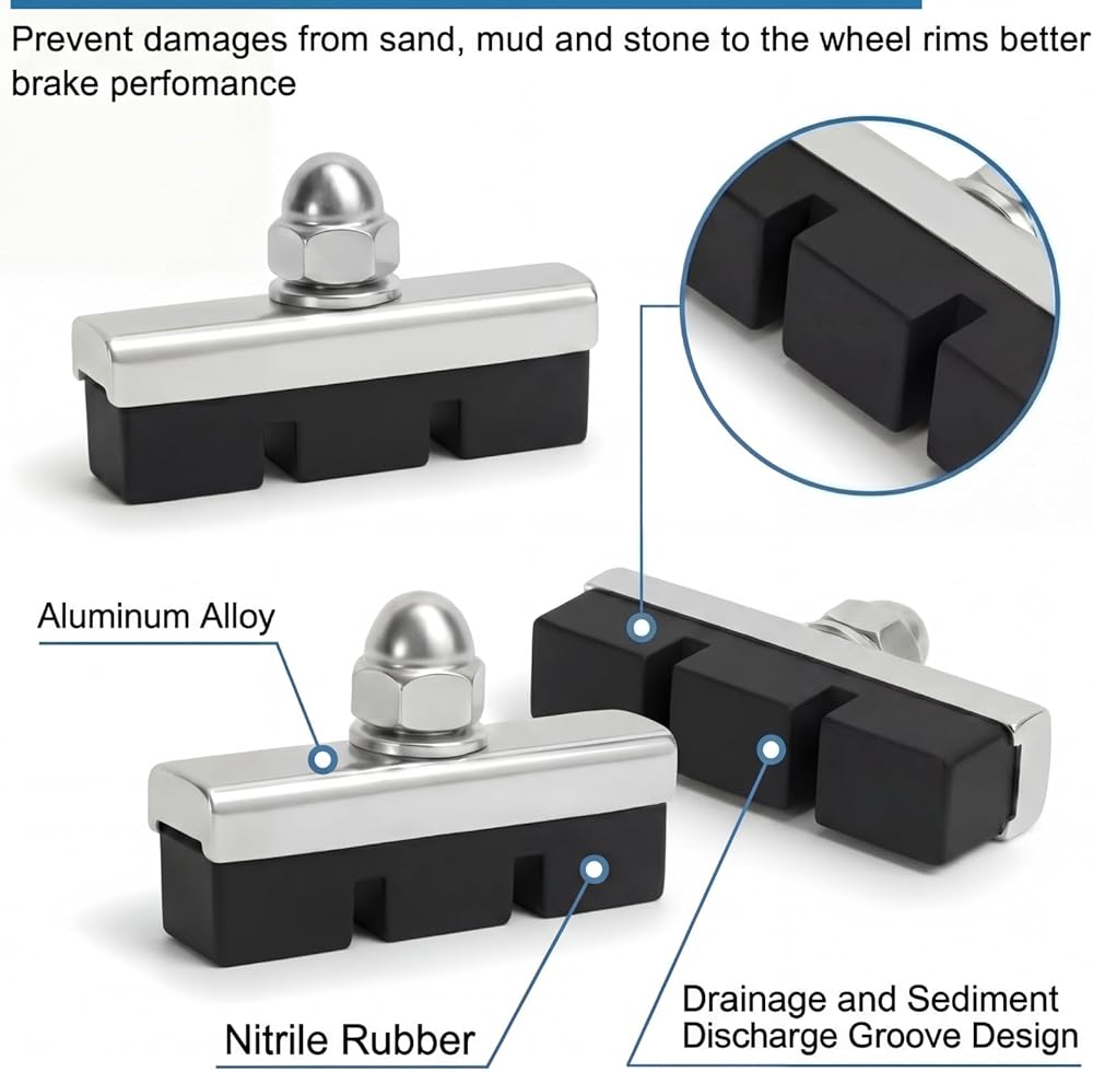 • Excellent Braking Performance: The bike replacement brake pads are designed to prevent damage to the rim from sand, mud, and stones, providing excellent braking performance even in rain and snow