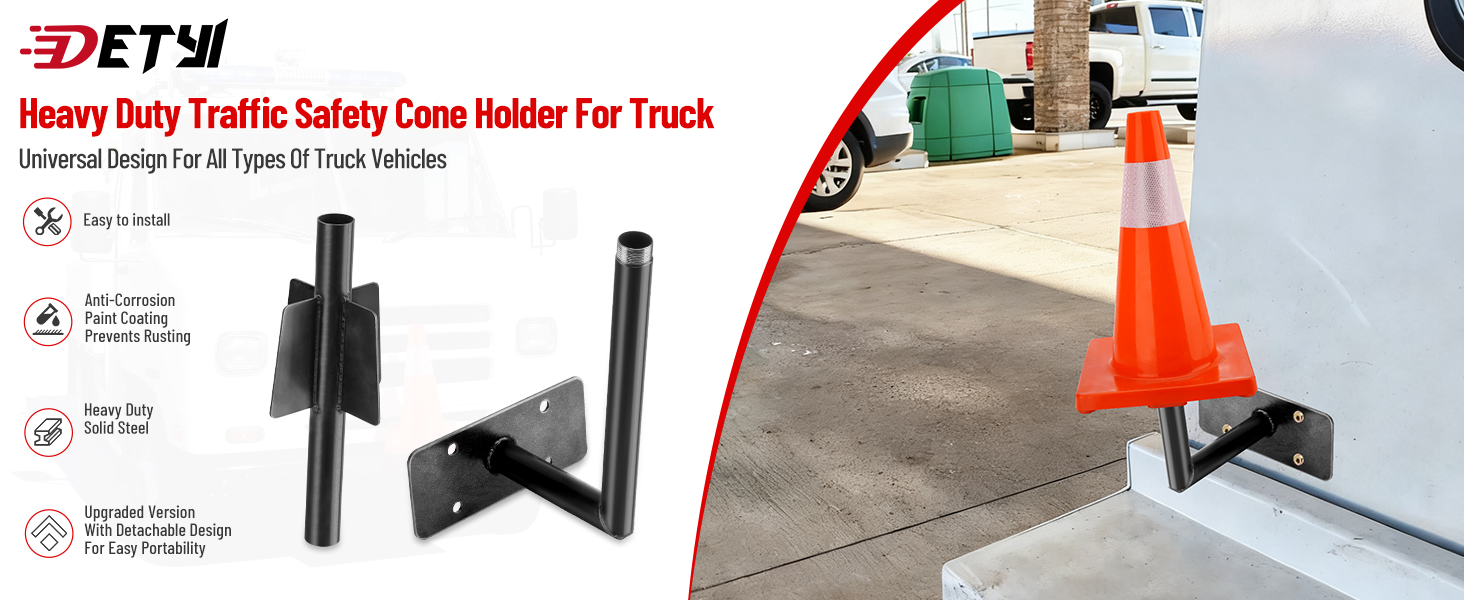Side Base Mounting Style: Designed for side rail or wall installations on trucks and utility vehicles. The side-mounted layout saves bed space while keeping cones upright and secure during transport.