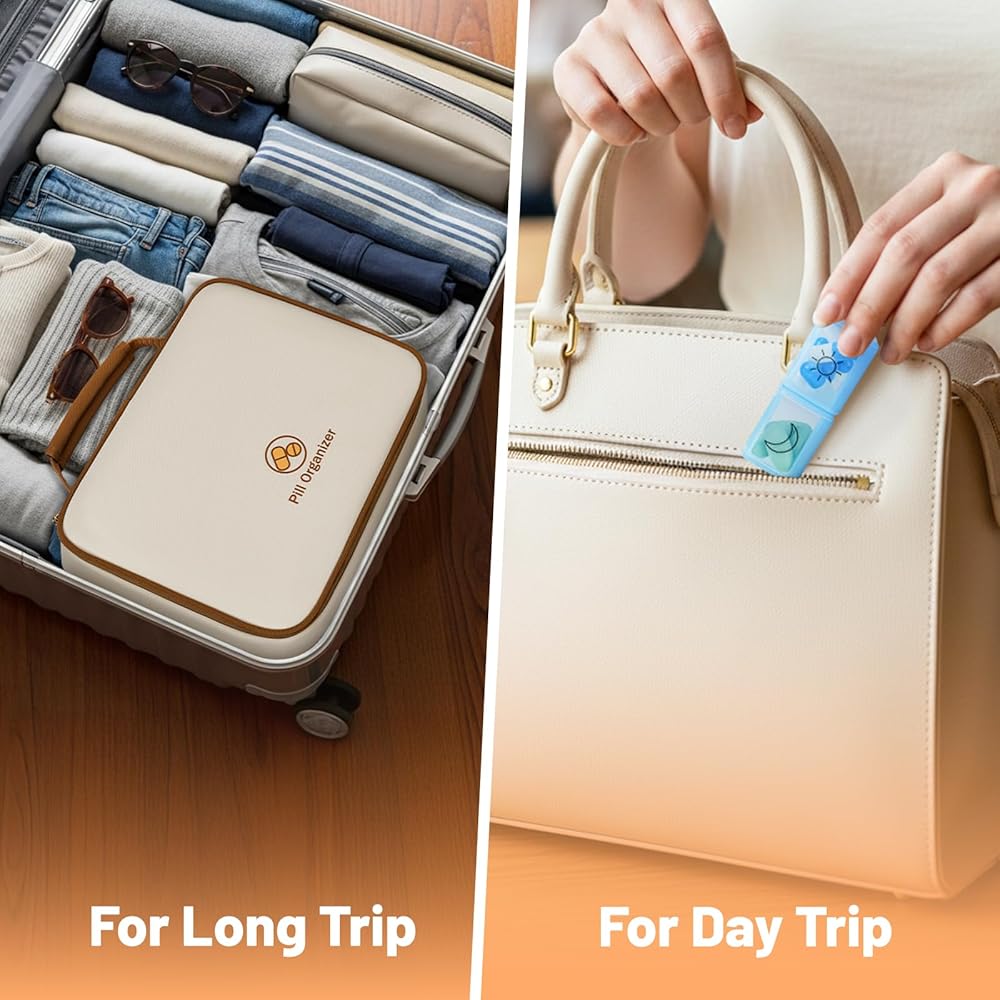 Weekly Pill Pouch for Short Trips: The included weekly travel pouch securely holds up to 7 days of pre-filled daily pill boxes. Perfect for weekend trips, vacations, or work travel, it complements the travel medicine organizer by making short-term medication packing simple