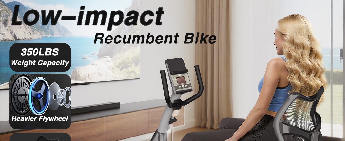 350LBS Weight Capacity:This recumbent exercise bike features a robust and heavy-duty frame that guarantees a longer service life, excellent stability, and safety. With a maximum weight capacity of 350 lbs, it is perfectly suited to meet the exercise needs of the entire family.