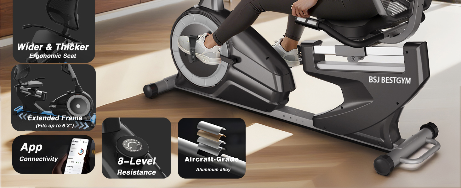 BSJ BESTGYM Recumbent Exercise Bike, Recumbent Stationary Bike for Home, Recumbent Bike 350LBS Weight Capacity, Magnetic Recumbent Bike with Smart APP, LCD Monitor, Heart Rate Handle