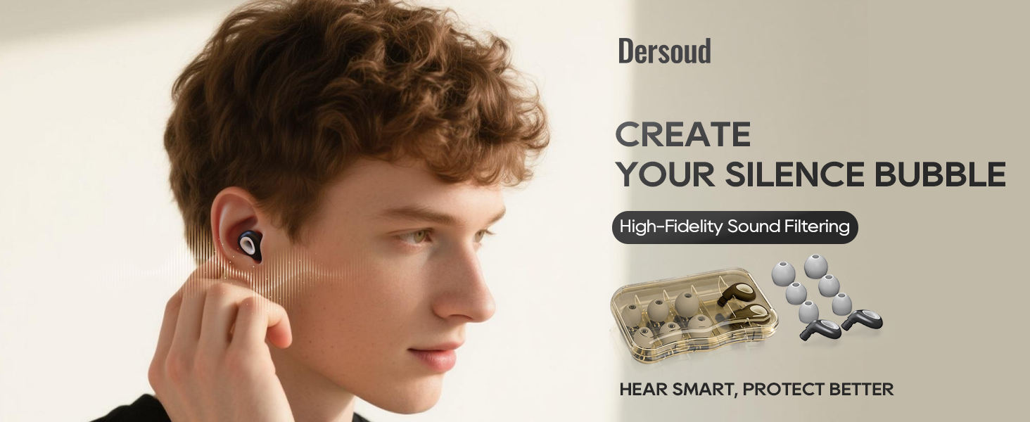 Pro-Grade Noise Reduction Blocks Ambient Noise: Dersoud ear plugs combine a multi-layer soundproof structure and high-density noise-absorbing materials, with ergonomic contours that seal your ear canal to block 24dB of noise. Perfect for canceling airplane engines, keyboard clicks, snoring, or concert bass—delivering a bubble of silence for work, sleep, or musical clarity
