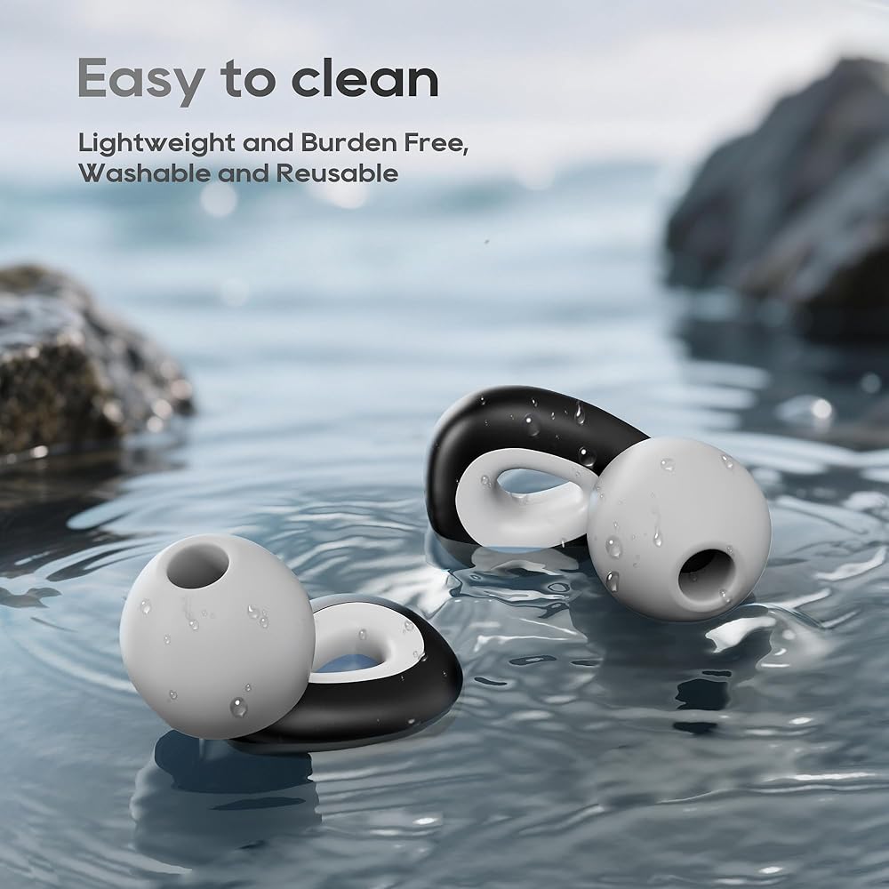 Grade Soft Silicone,Even for Side Sleepers:Made of premium silicone material, these earplugs offer ultra-soft comfort, allowing you to wear them all day without any discomfort. They gently conform to your ear canal due to their soft texture. Available in 2 Buds + 6 Tips (S/M/L), they are optimized for side-sleeping. Even if you sleep on your side all night long, there will be no pressure, enabling you to enjoy a comfortable and sound sleep.