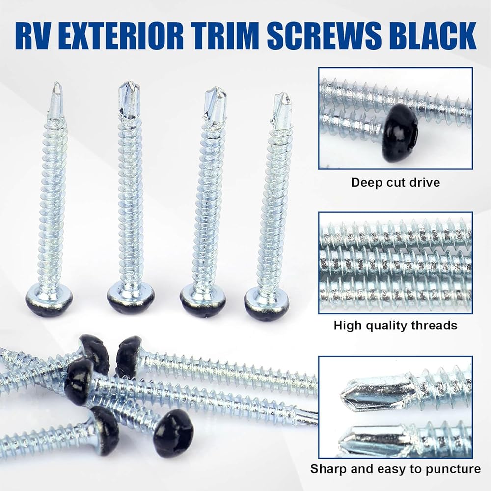 - Black Square Drive RV Screws Coarse threads provide better stability so your parts won't pop out of the wall or tear in tough road conditions