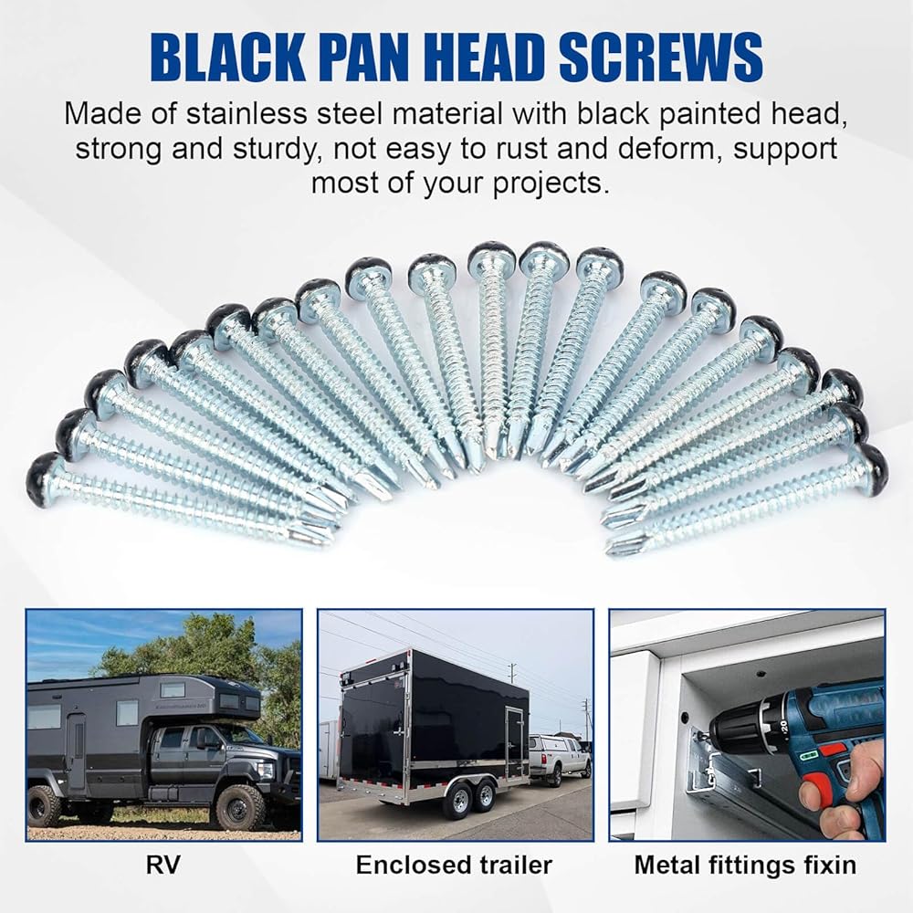 - RV Pan Head Screws Powder Coated Bright Black Head