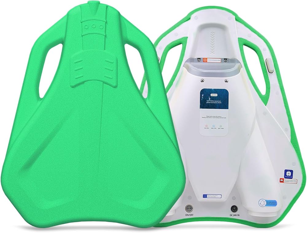 Materials & Size: Electric Swimming Kickboard uses EPP+ABS material, which is lighter and has better floatation than standard EVA boards. The dimensions are 20.16*16.54*5.98 inches and weighs 7.72 pounds.